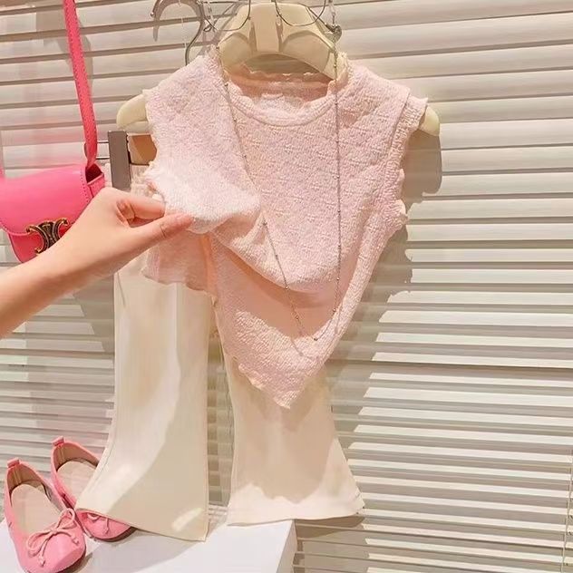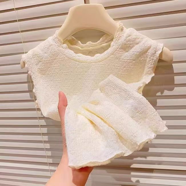 소녀의 서양식 레이스 높은 탄성 조끼 여름 새로운 어린이 아기의 캐주얼 올 매치 소매 티셔츠, 우드 이어 엣지