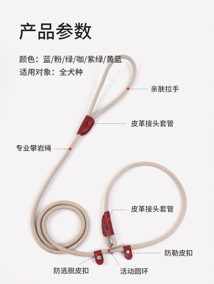 가죽 끈이없는 국경 간 개 가죽 끈 P 로프 중형 및 대형 개 안전 버클 유니버설 개 체인 애완 동물 용품 도매