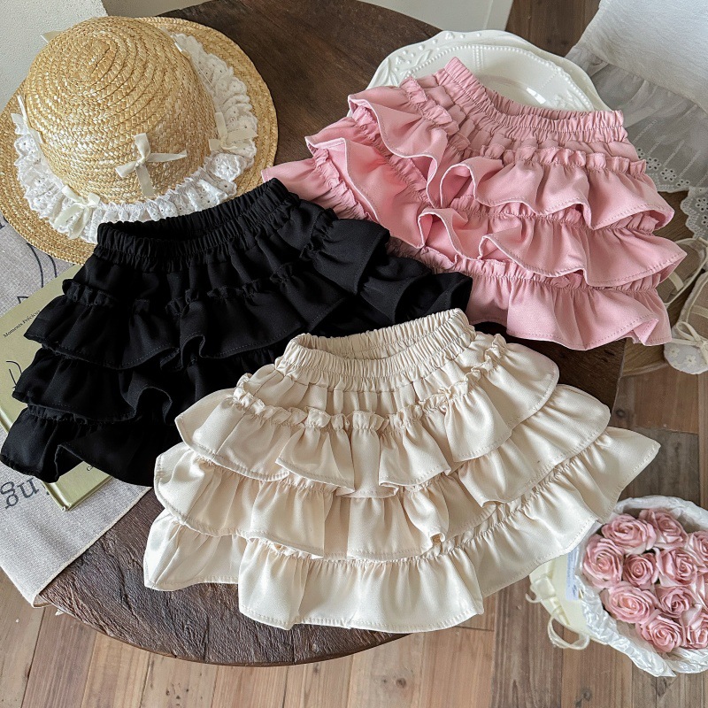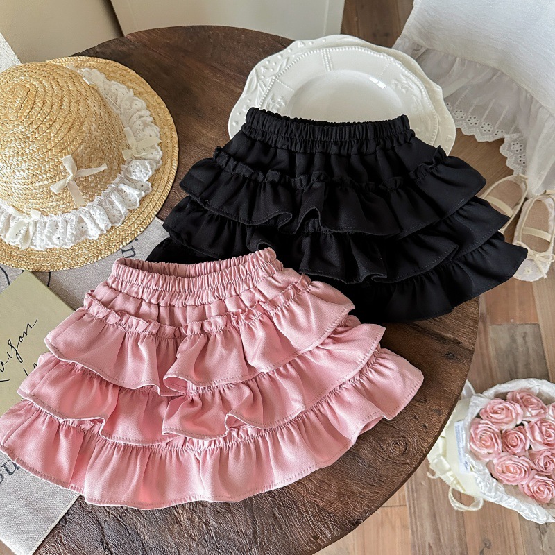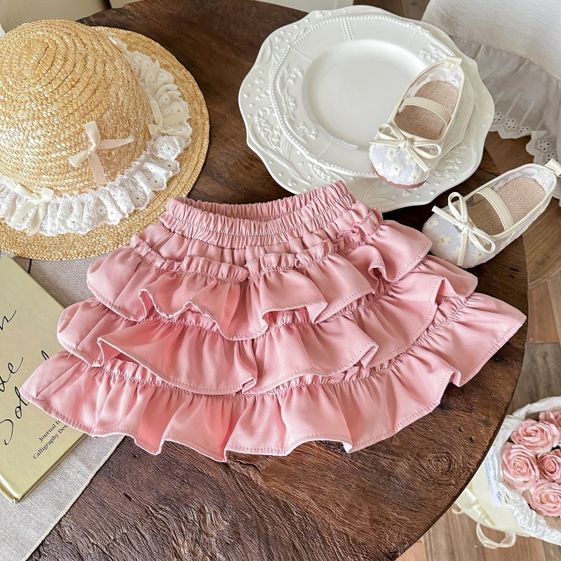 소녀의 짧은 치마 2025 소녀의 핑크 발레 스타일 투투 스커트 주름 케이크 스커트 유행 유행 공주 치마