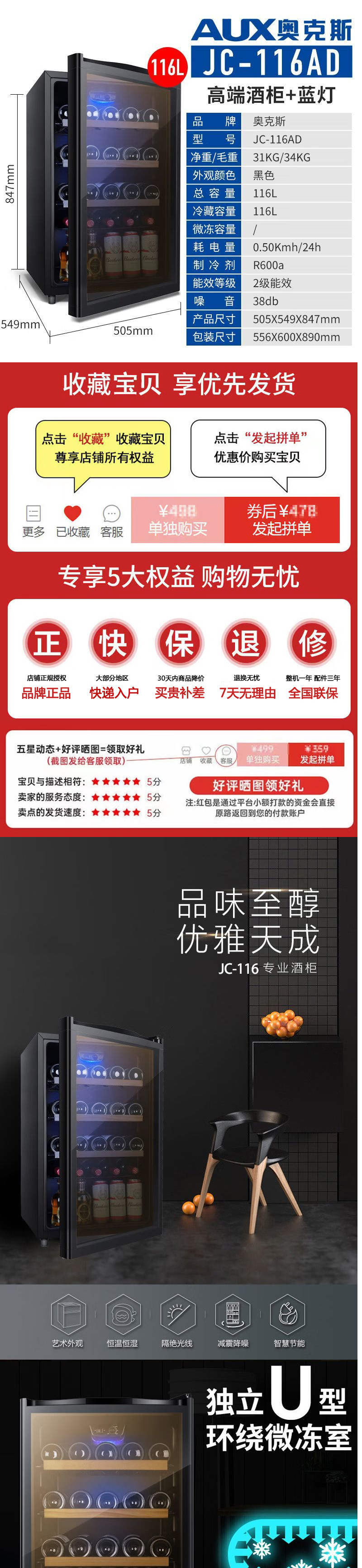오크스 116L 아이스 바 디스플레이 캐비닛 냉장 보존 캐비닛 차와 레드 와인 항온 캐비닛 상업용 아이스 바 와인 캐비닛