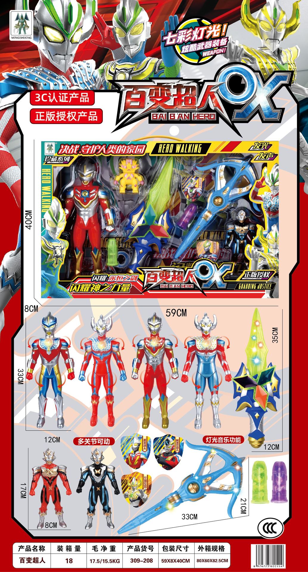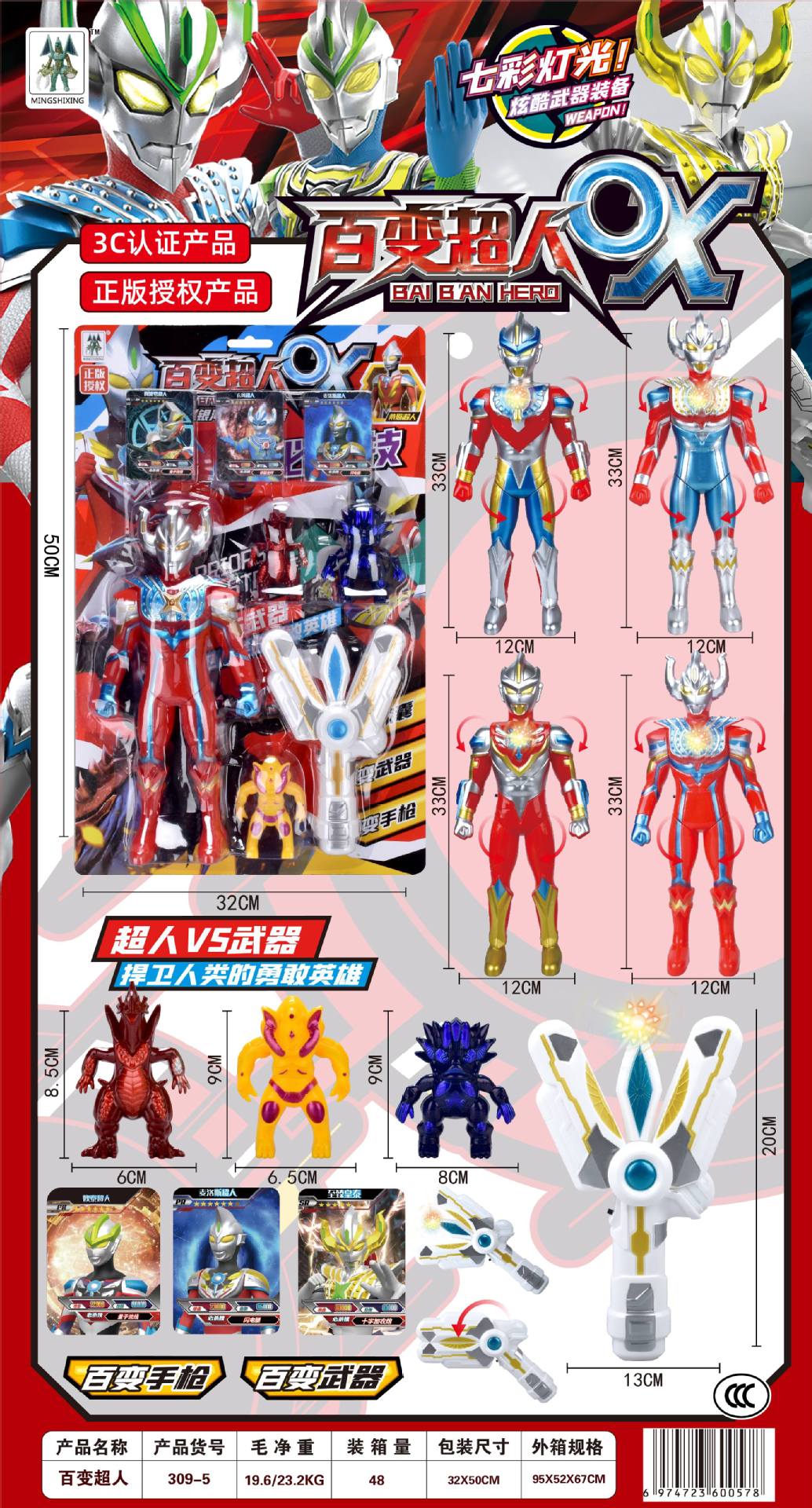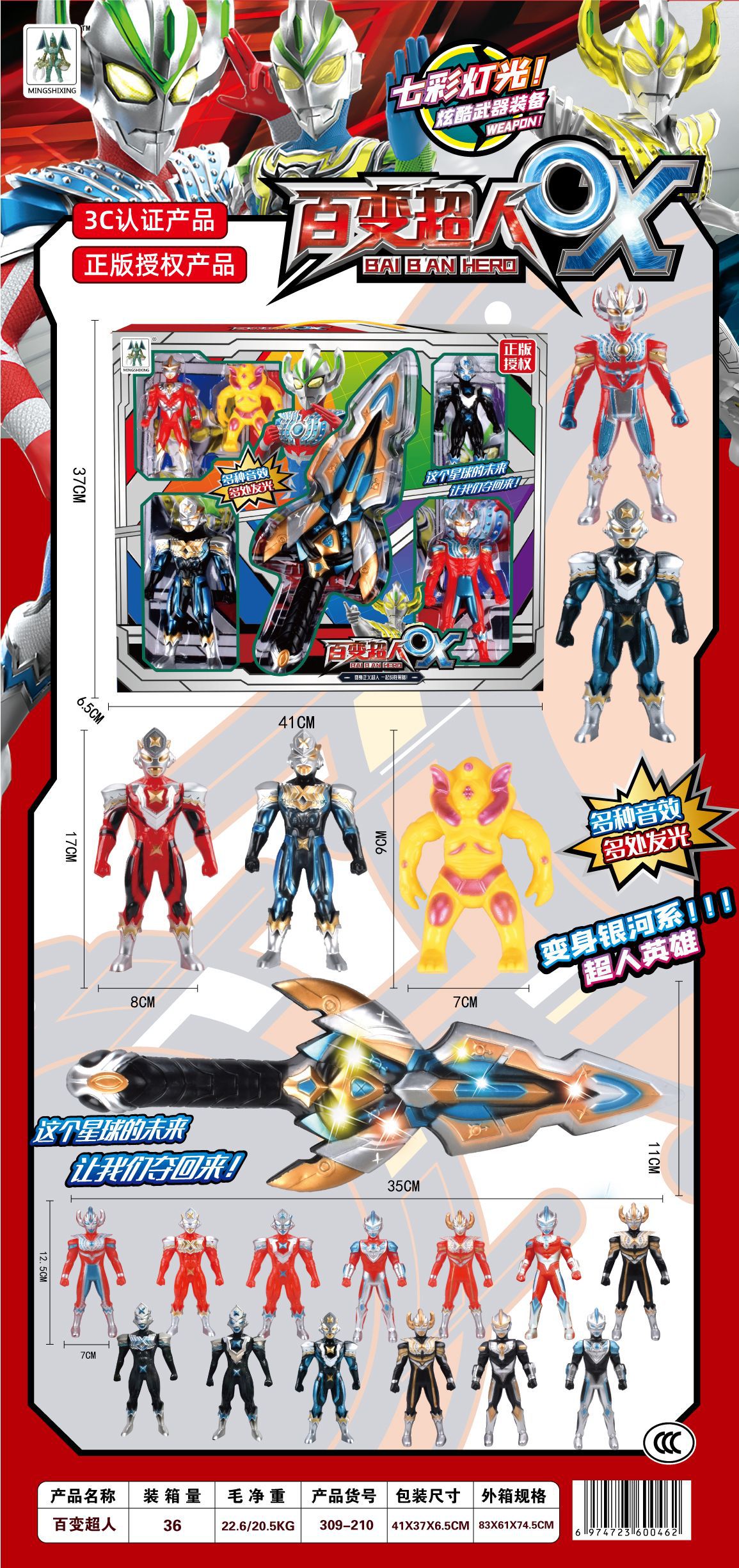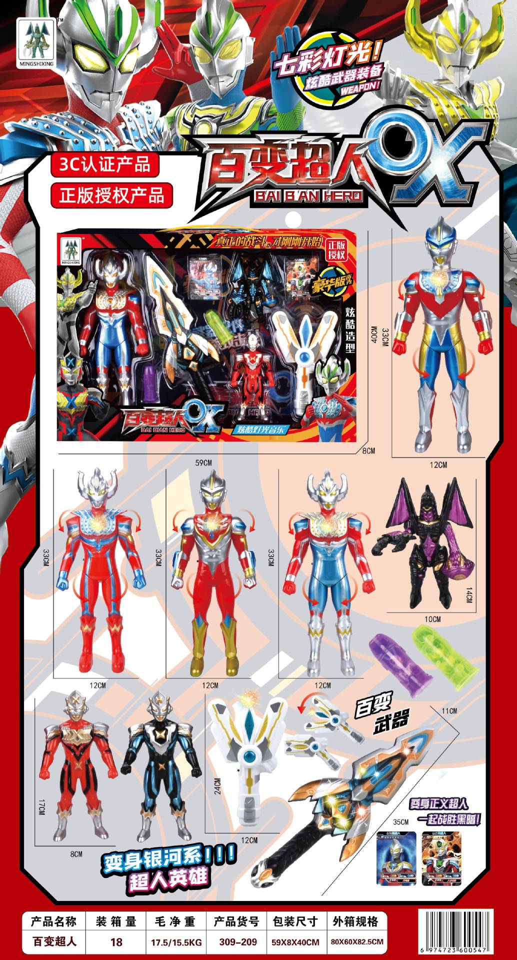 小技巧:309系列 大号超人或者武器均有声光功能(自备电池)209系列均为模型,无声光!