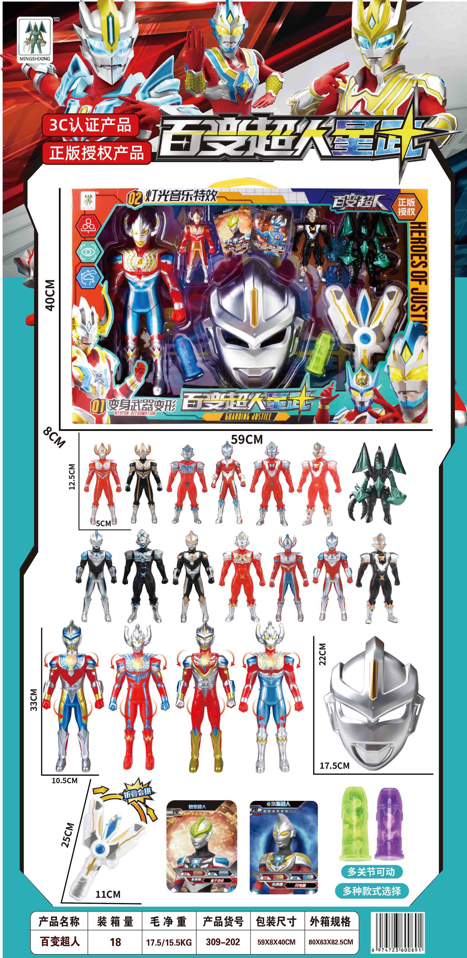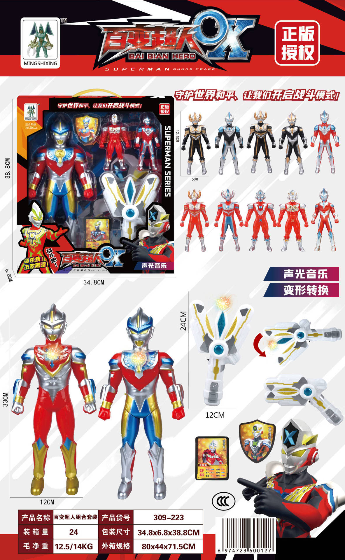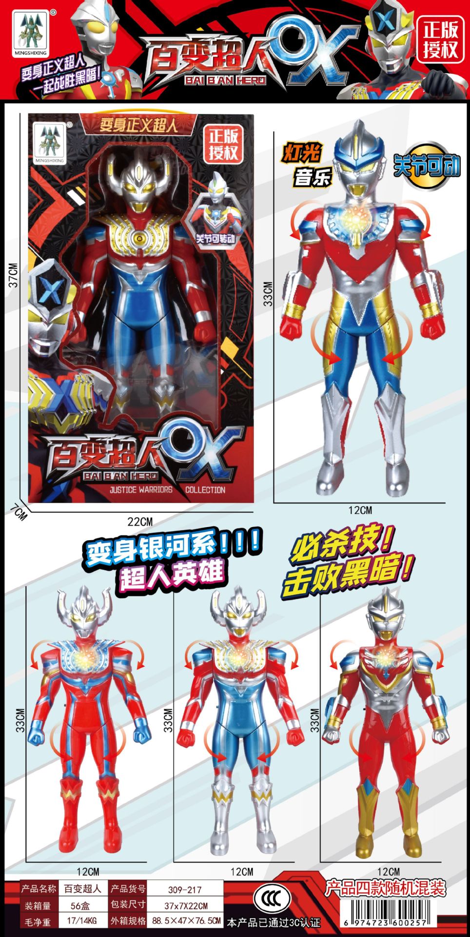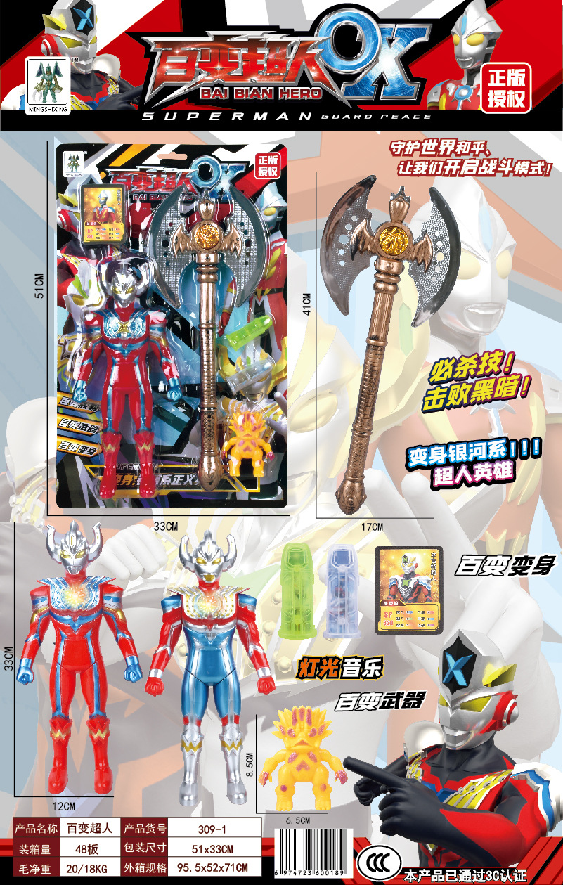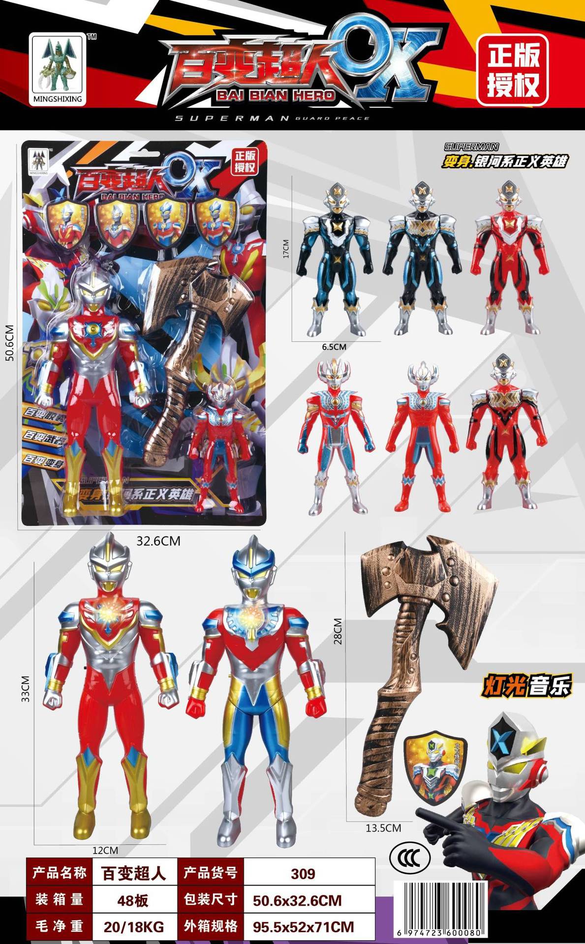 小技巧:309系列 大号超人或者武器均有声光功能(自备电池)209系列均为模型,无声光!