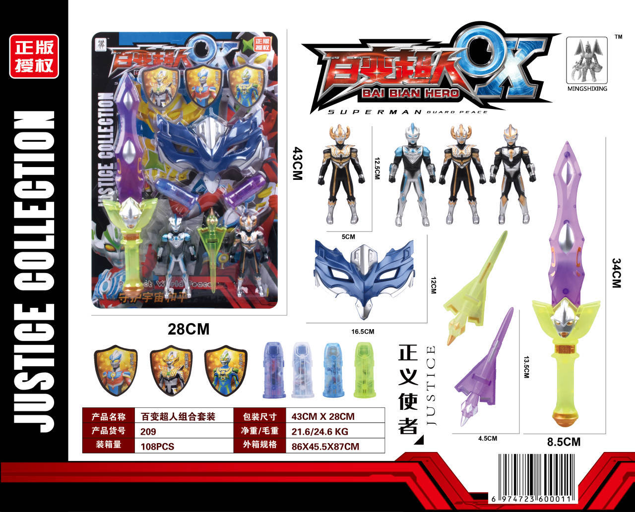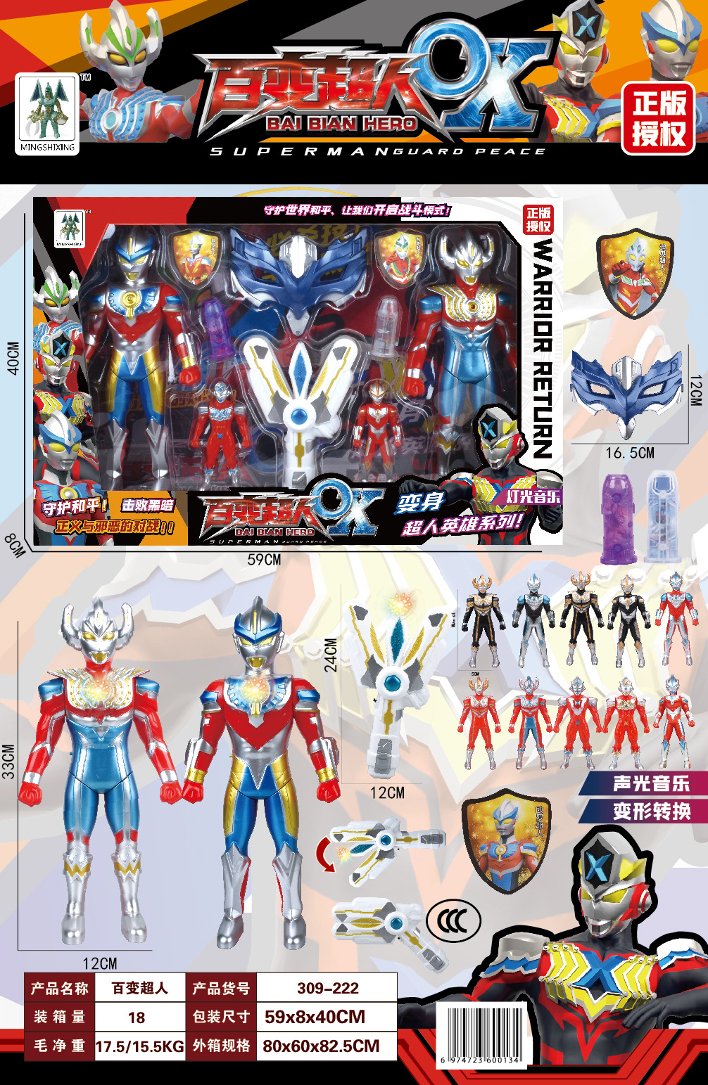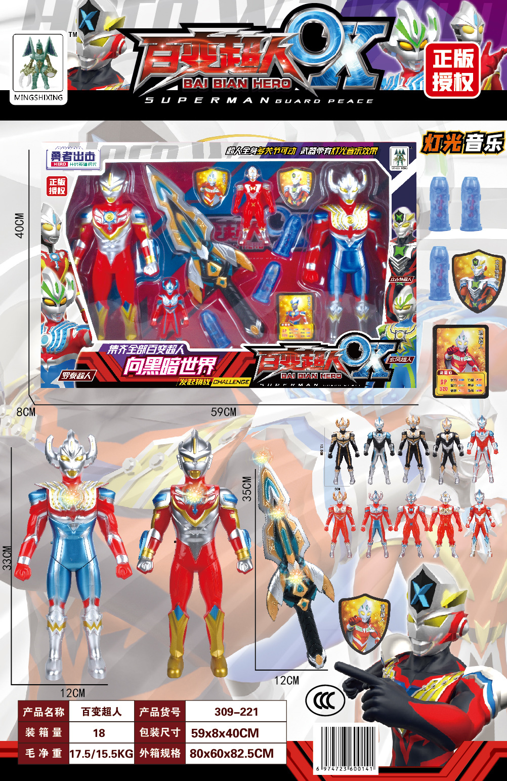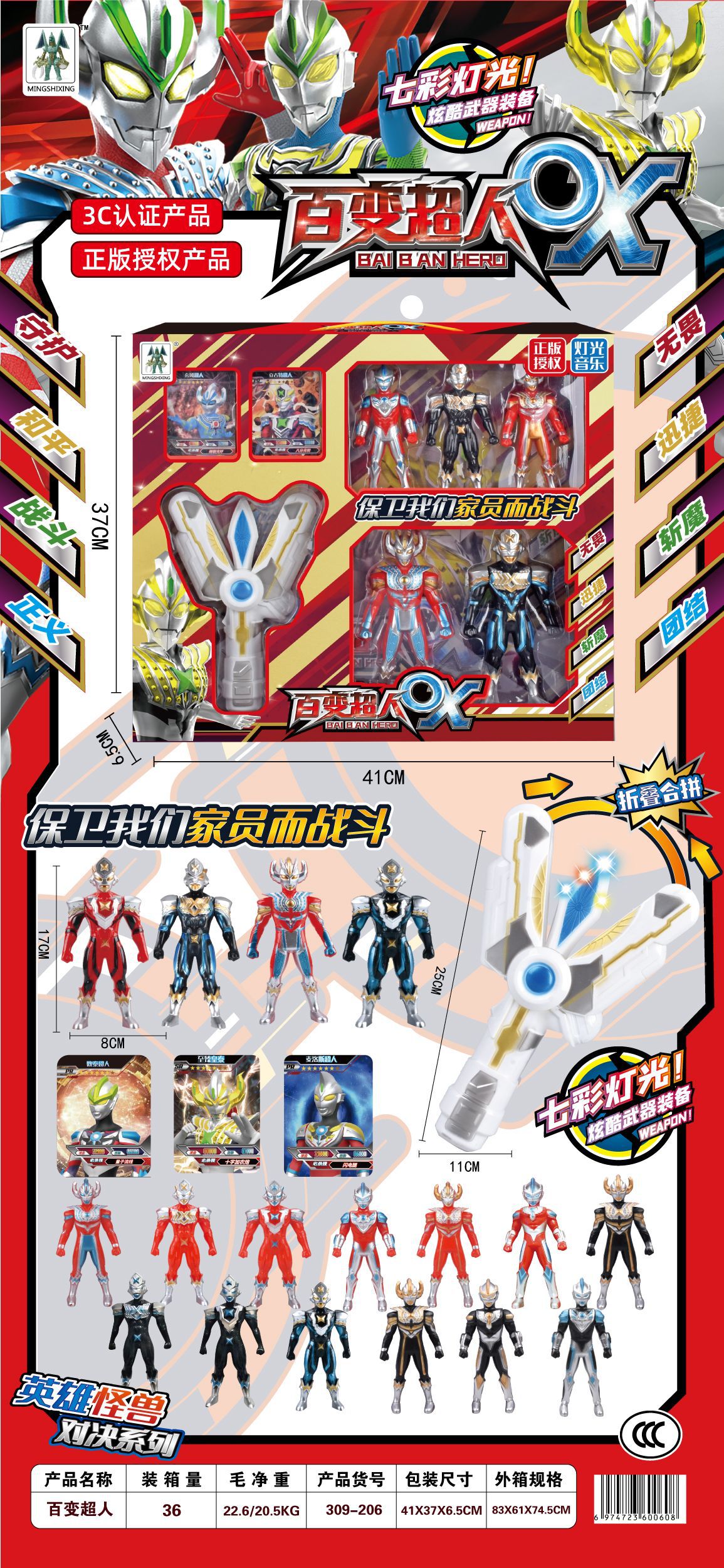 小技巧:309系列 大号超人或者武器均有声光功能(自备电池)209系列均为模型,无声光!