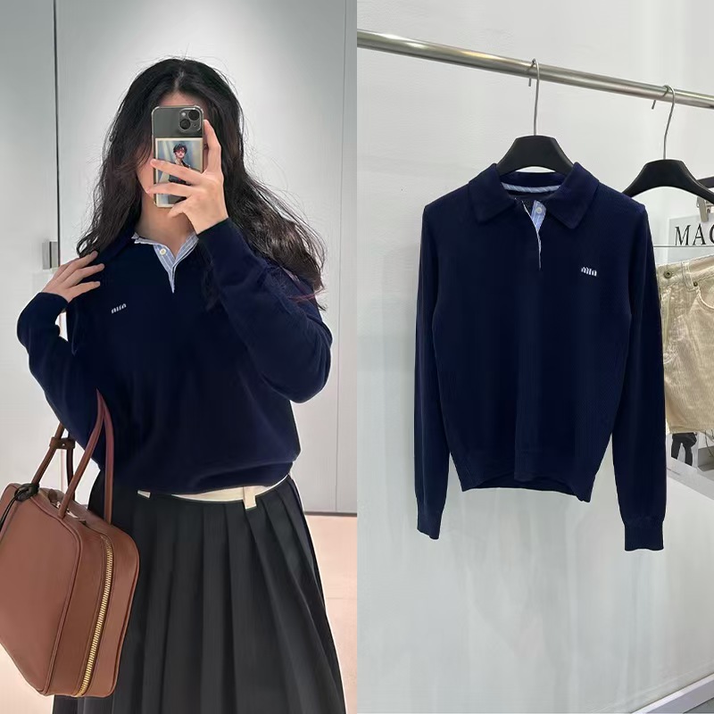 남유 고급형 가을 겨울 미우 스타일 미니멀 라벨 젊어보이는 여학생 다용도 숏 라펠 울 니트 스웨터스토어 가기
