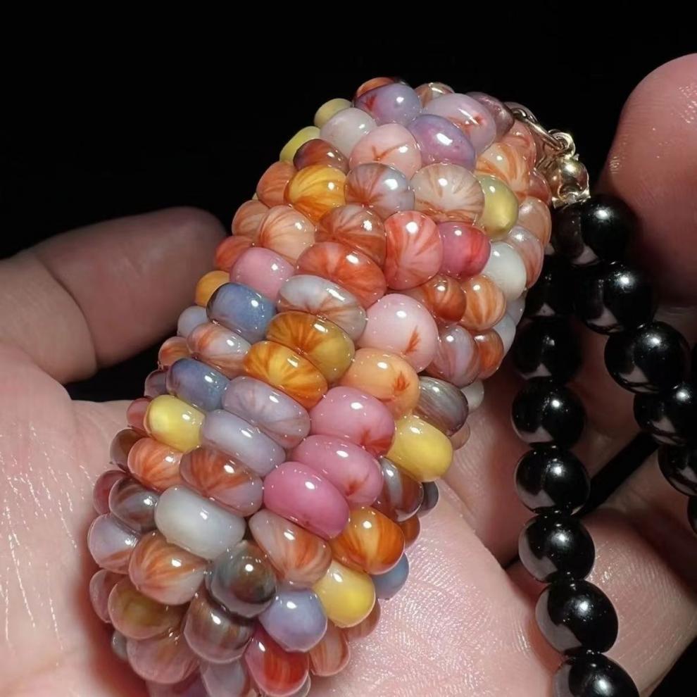 七彩宝石文玩玉米天然宝石血丝文玩玉米毛料七彩小玉米玉米盘玩