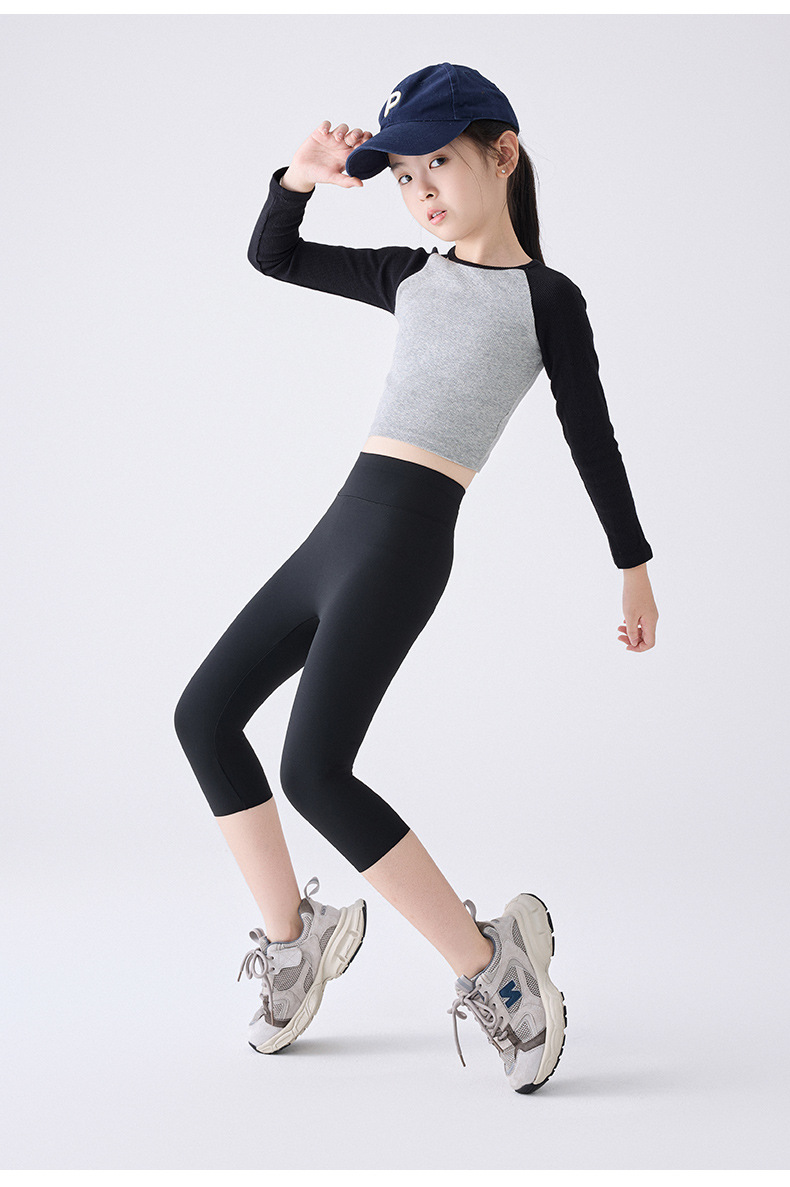 소녀의 봄 상어 바지 얇은 통기성 요가 바지 땀 흡수 레깅스 모양 바지 큰 어린이 카프리 바지 재고 외복스토어 가기