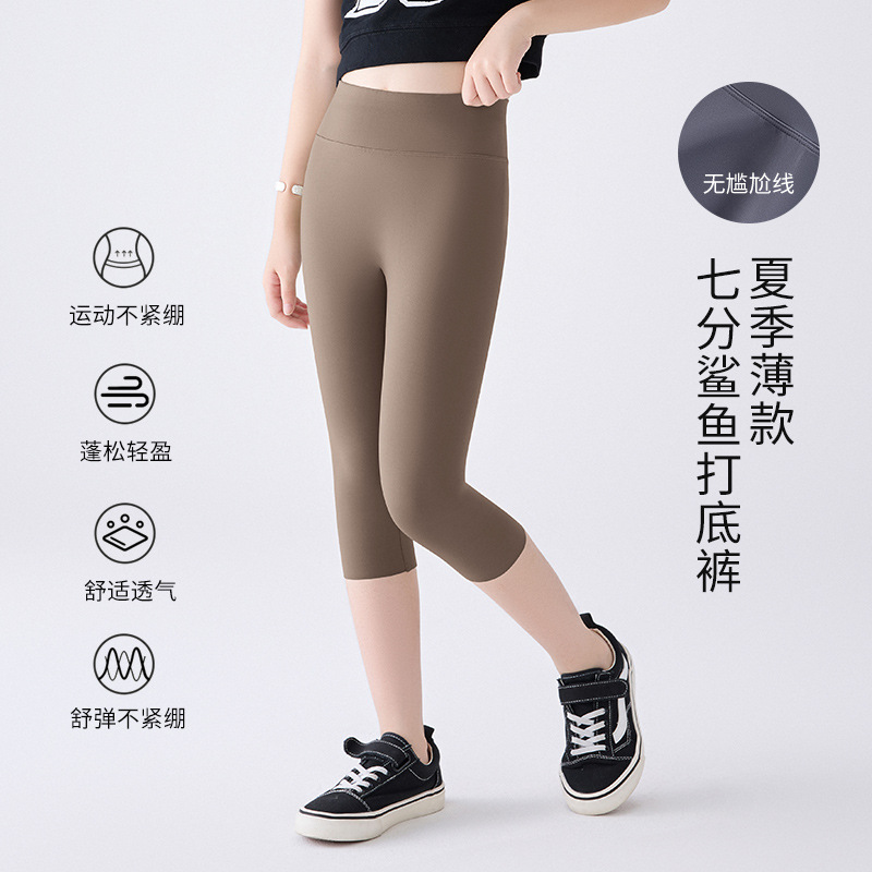 소녀의 봄 상어 바지 얇은 통기성 요가 바지 땀 흡수 레깅스 모양 바지 큰 어린이 카프리 바지 재고 외복