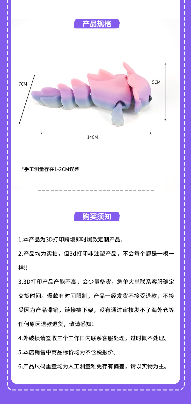 국경 3D 인쇄 해양 동물 귀여운 도롱뇽 관절 이동식 장난감 장식품 공예스토어 가기