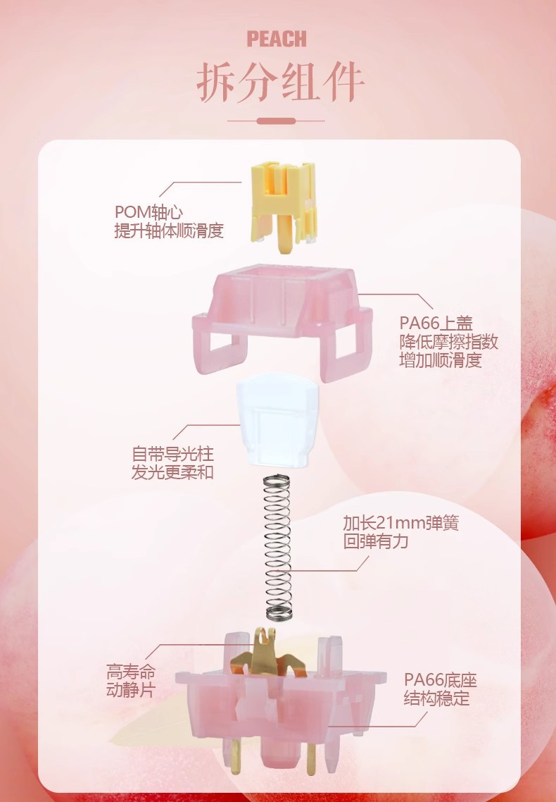 Gotte 복숭아 샤프트 V3 는 라이트 가이드 칼럼 기계 키보드 핫 플러그 Gotte 음소거 샤프트 바디 업그레이드 실리콘 패드와 함께 제공됩니다.스토어 가기