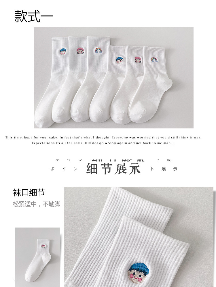 양말 여성 일본 유행 양말 흰색 무지개 남성과 여성 자수 양말 봄과 여름 새로운 커플 양말 학생 귀여운 긴 양말