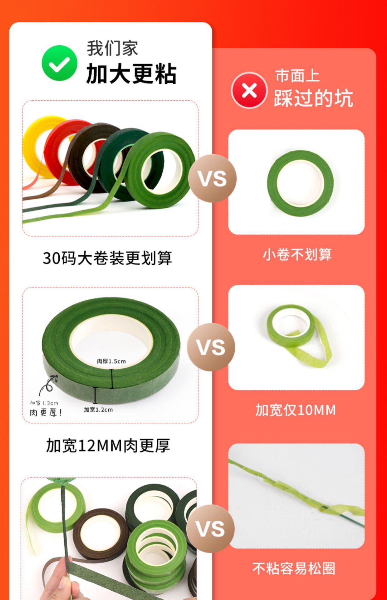 플로랄 테이프 그린 No. 2 플로랄 스틱 테이프 트위스트 스틱 부케 핸드메이드 DIY 플로랄 소재 장미 꽃 포장스토어 가기