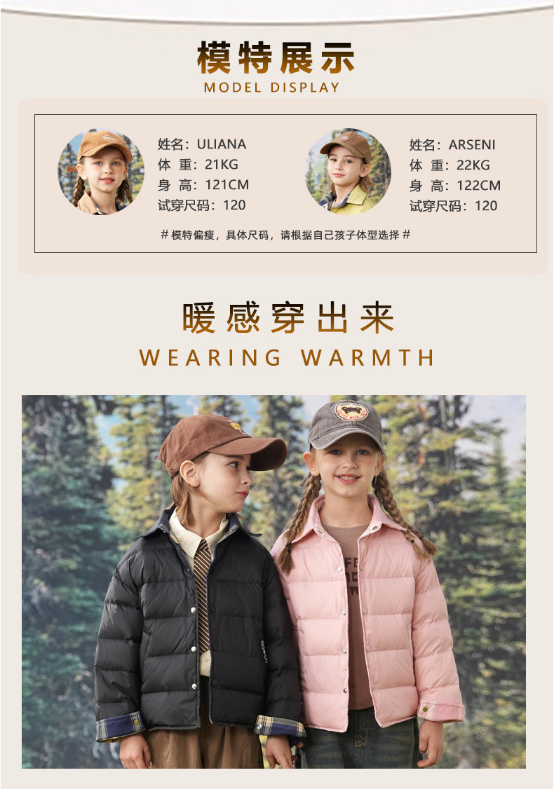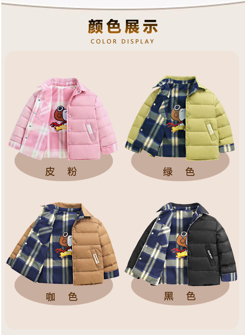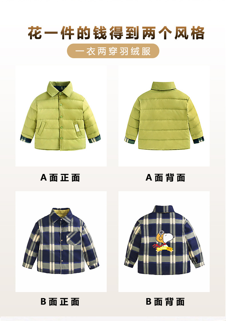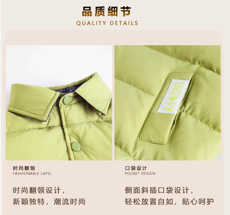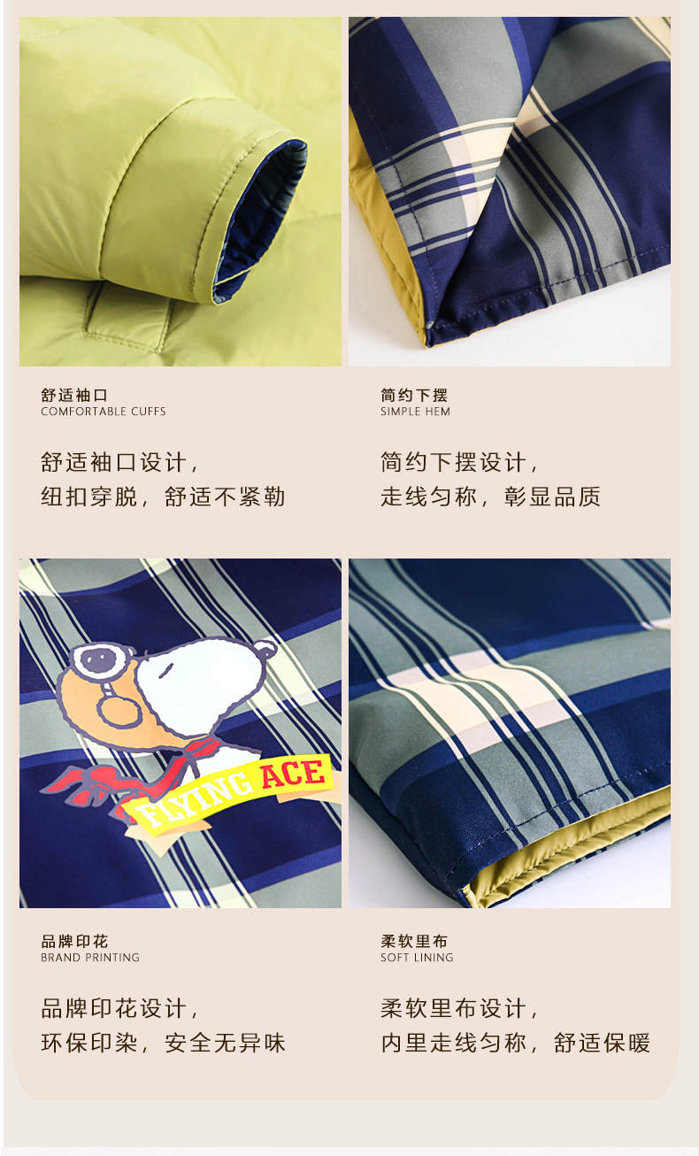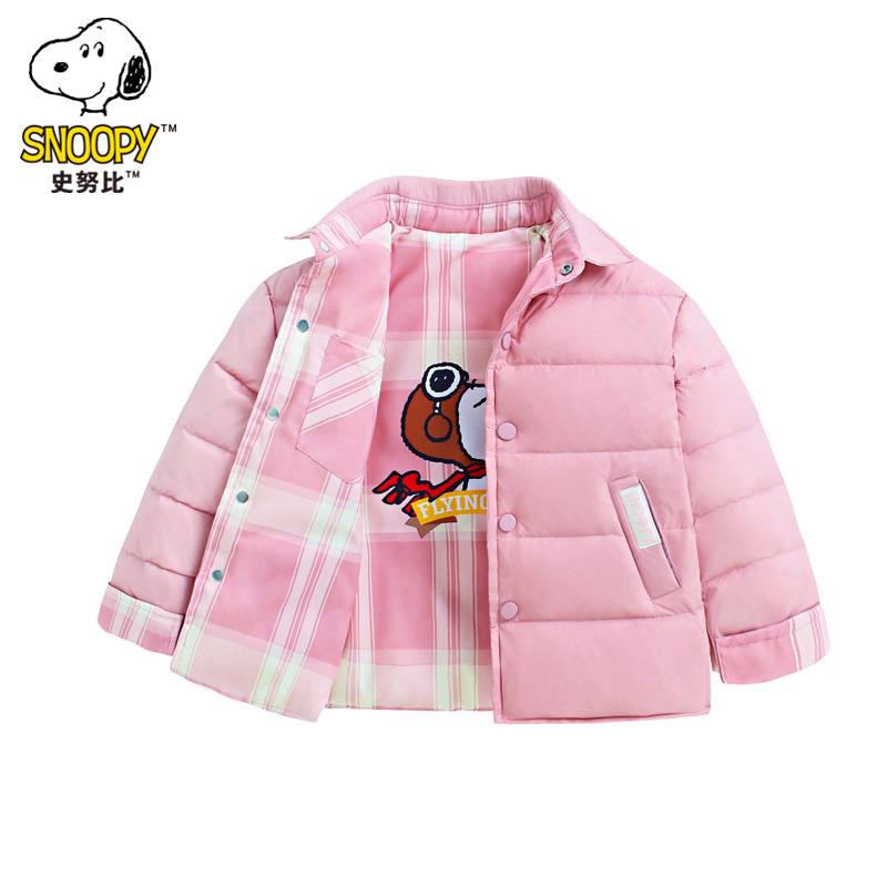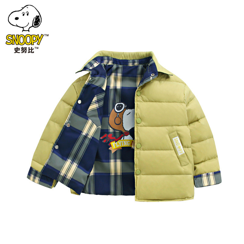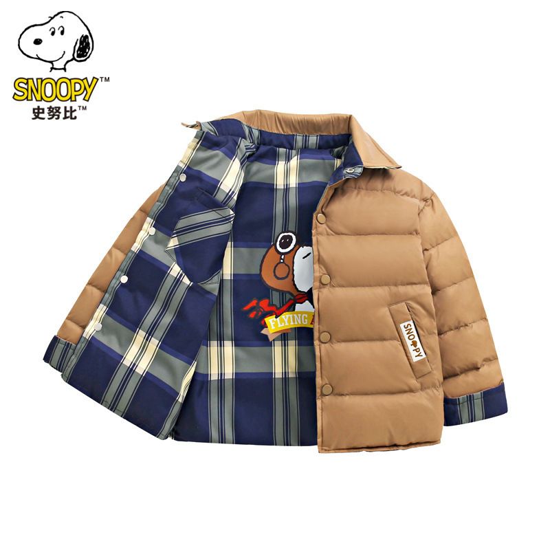 스누피 어린이 양면 착용 90 흰색 오리 다운 라이너 두꺼운 재킷 한국식 새 겨울복 중 · 소형 어린이스토어 가기
