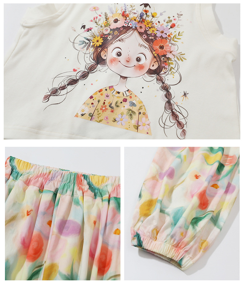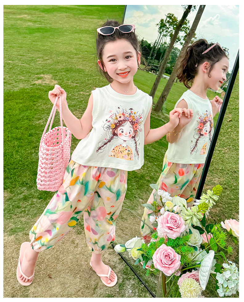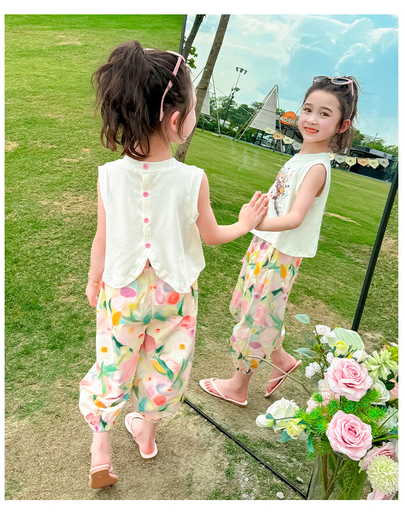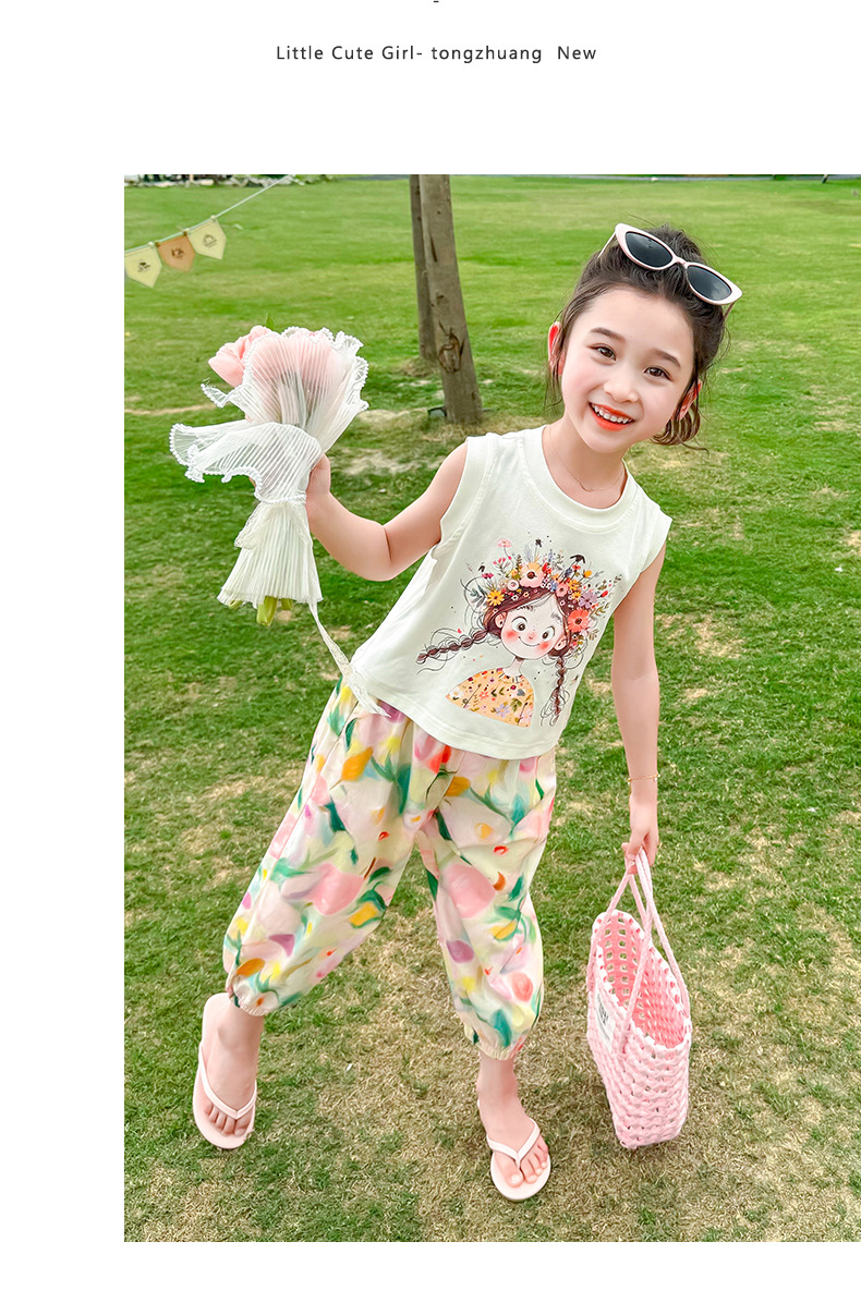 소녀 여름 세트 2025 새로운 어린이 서양 스타일 유행 안티 모기 바지 여름 투피스 민소매 세트