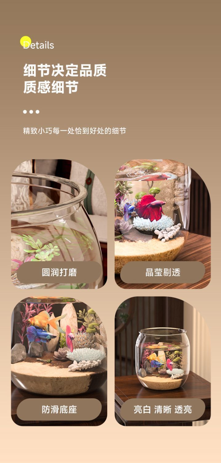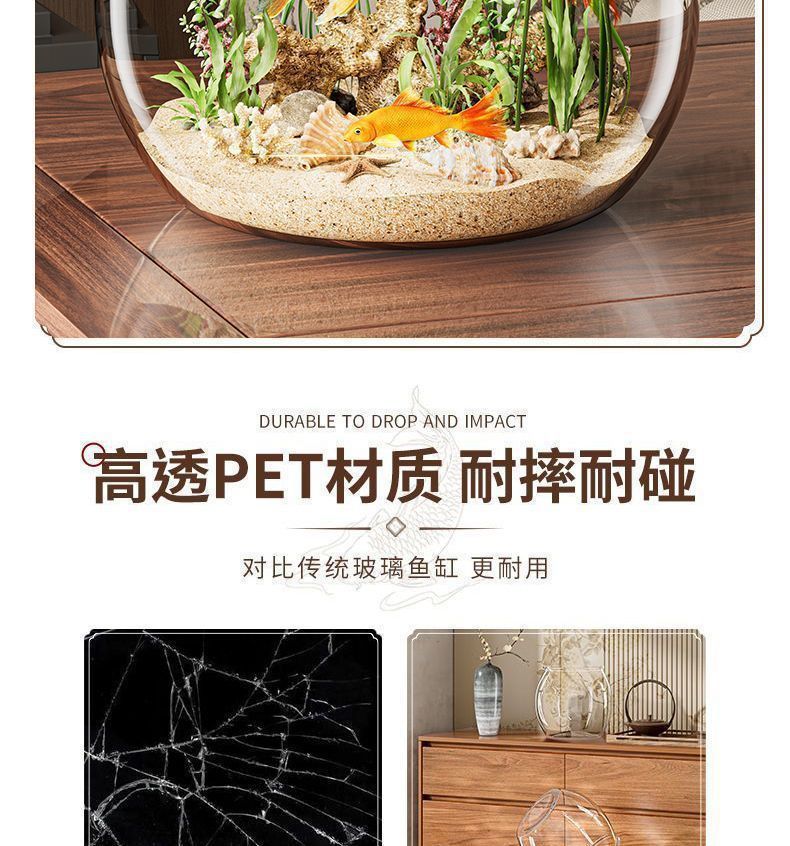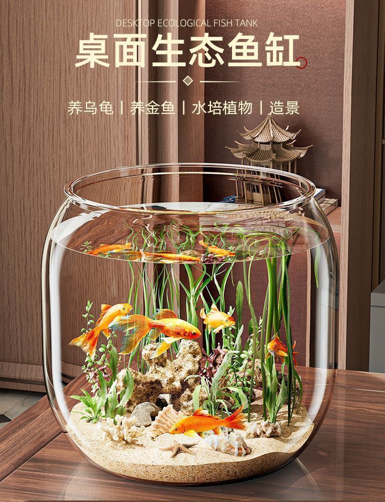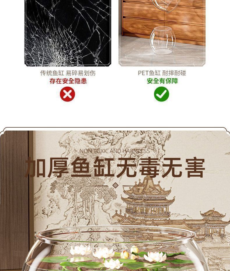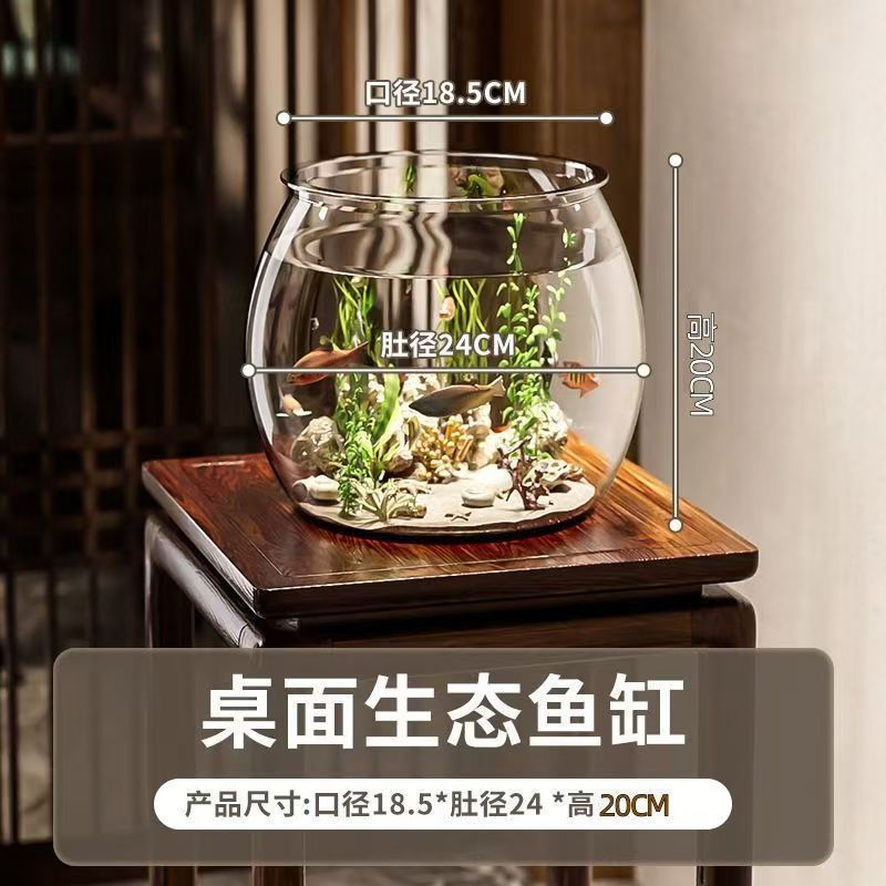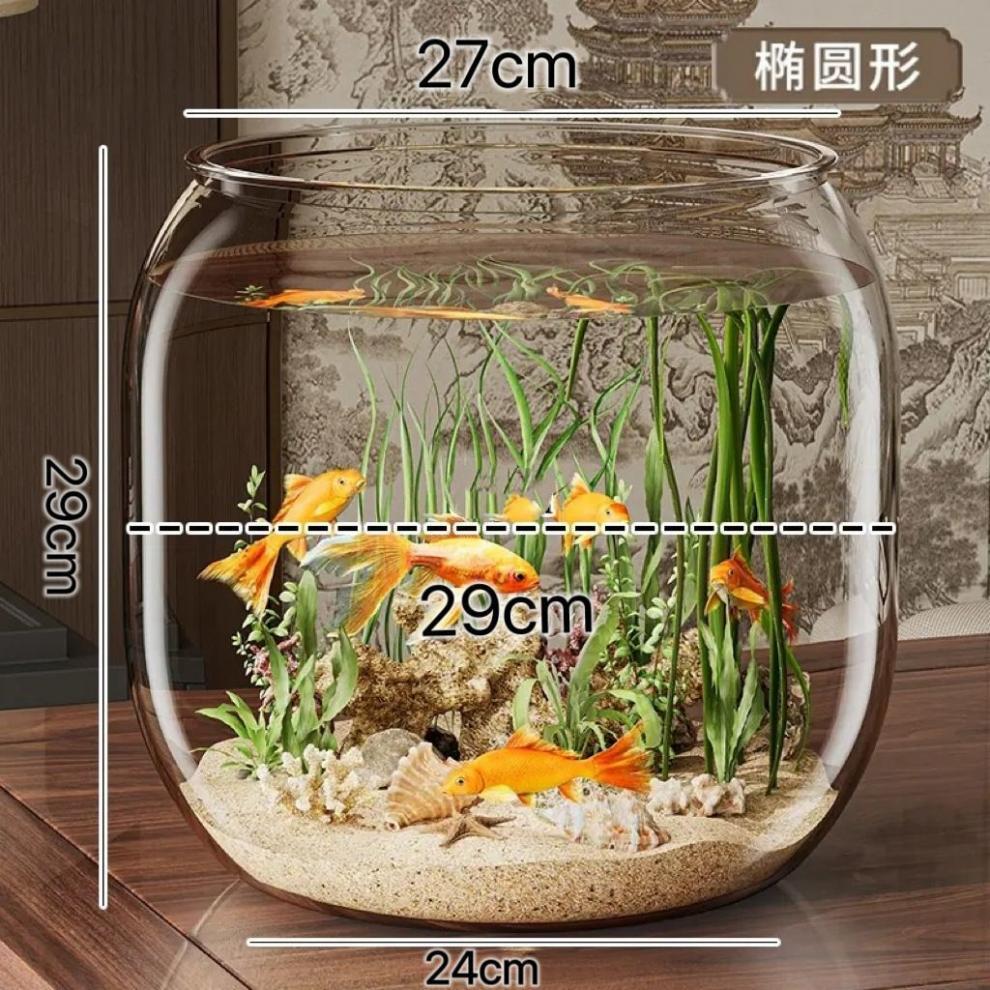 둥근 물고기 탱크 플라스틱 원피스 안티 드롭 저항 높은 투자율 모방 유리 거실 작은 데스크탑 생태 탱크스토어 가기