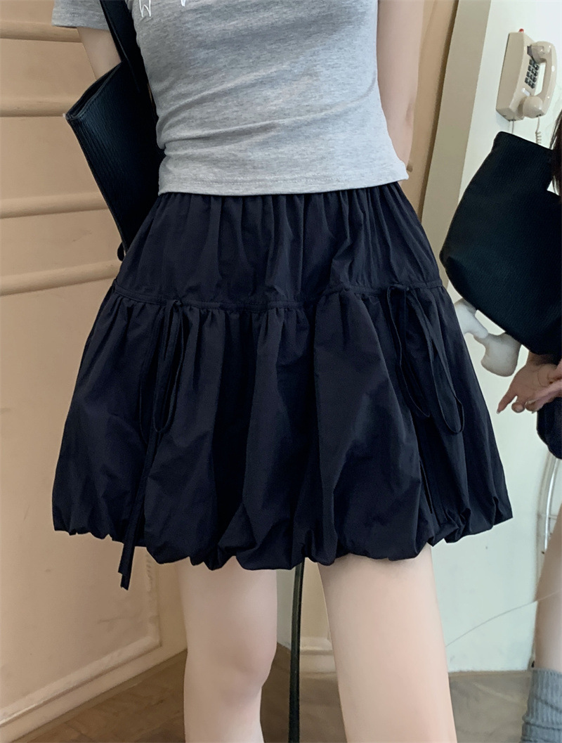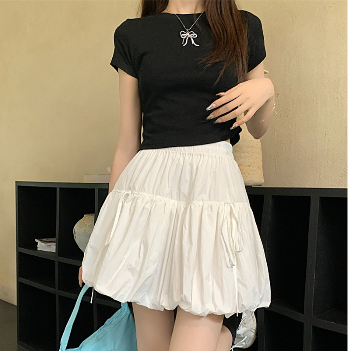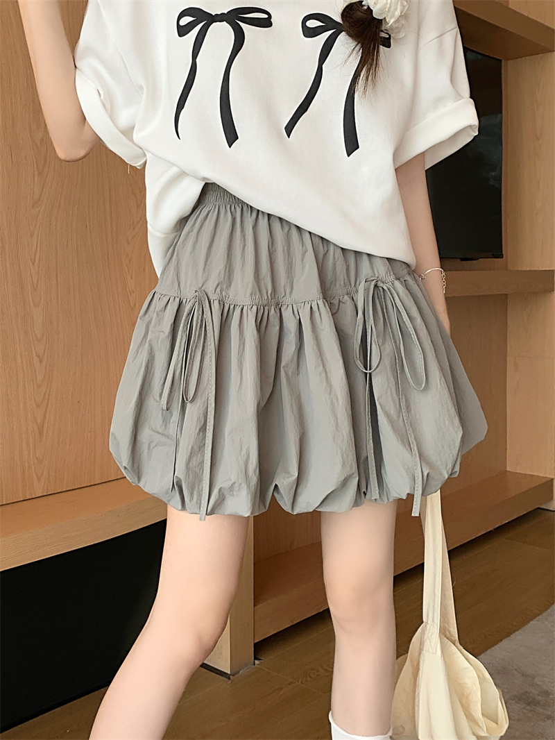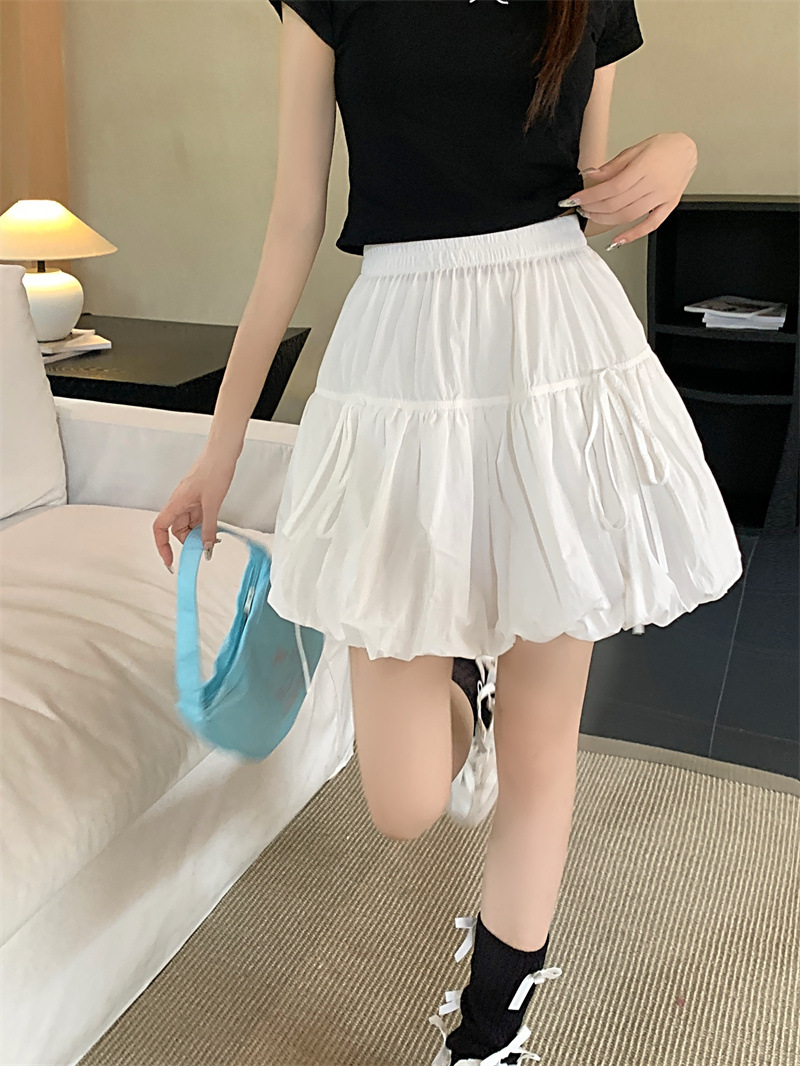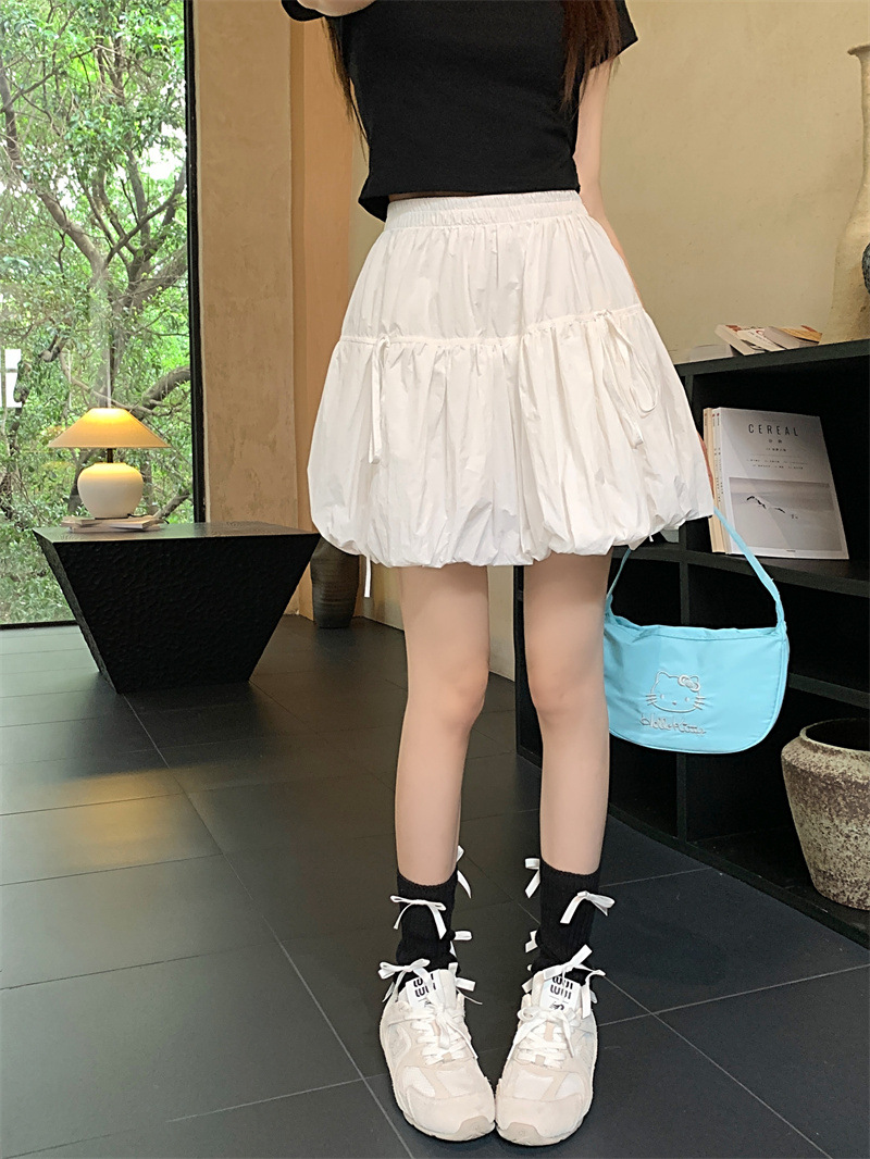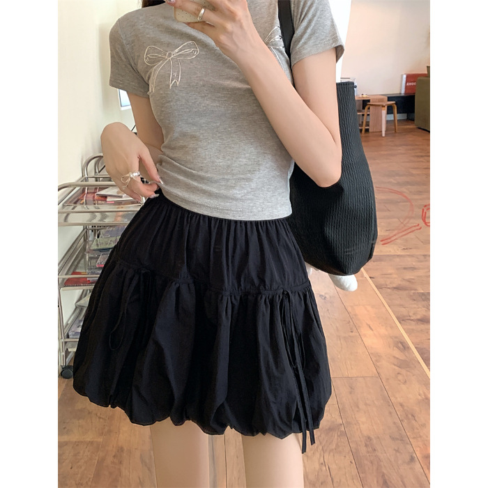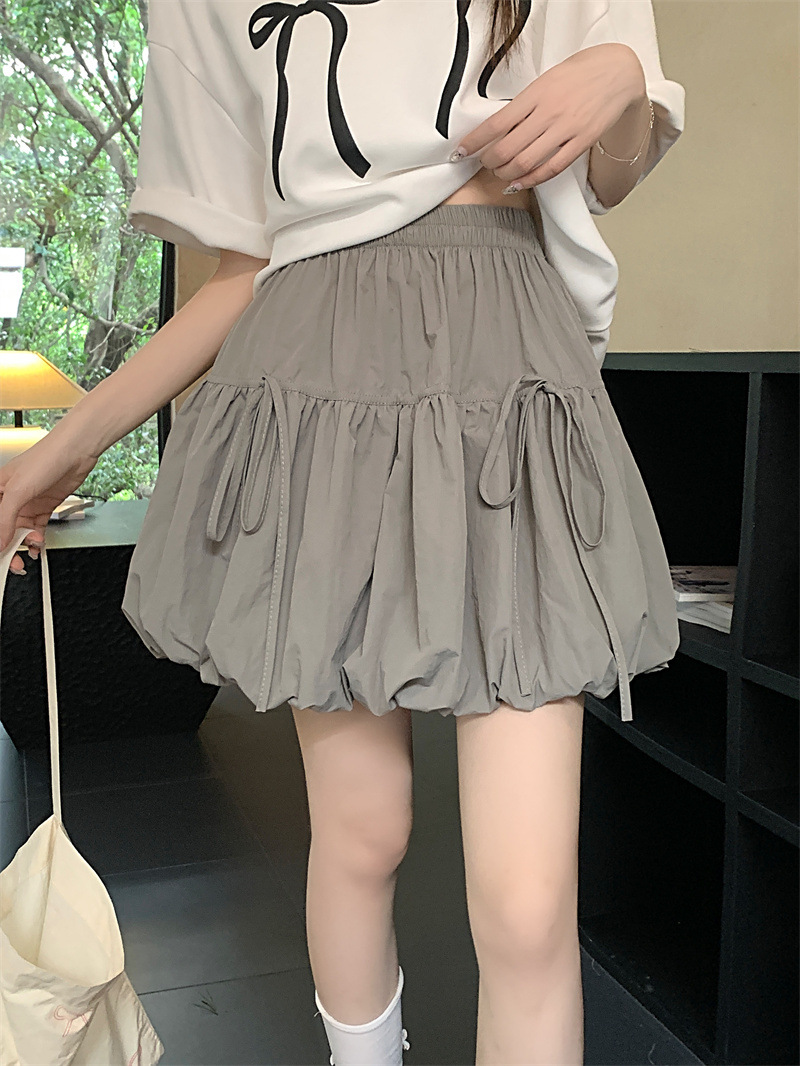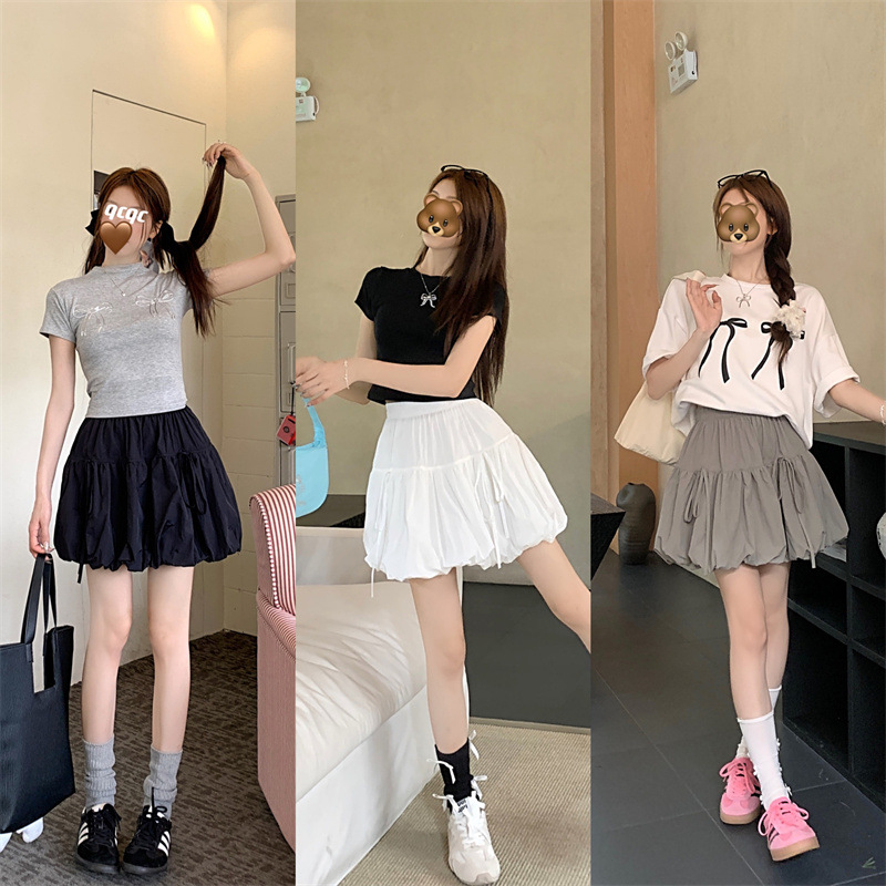여성을위한 퍼프 스커트 하이 웨이스트 A 라인 버드 플리츠 스커트 여름 2025 새로운 스위트 보우 랜턴 스커트