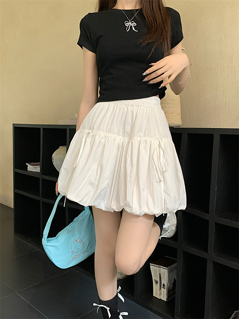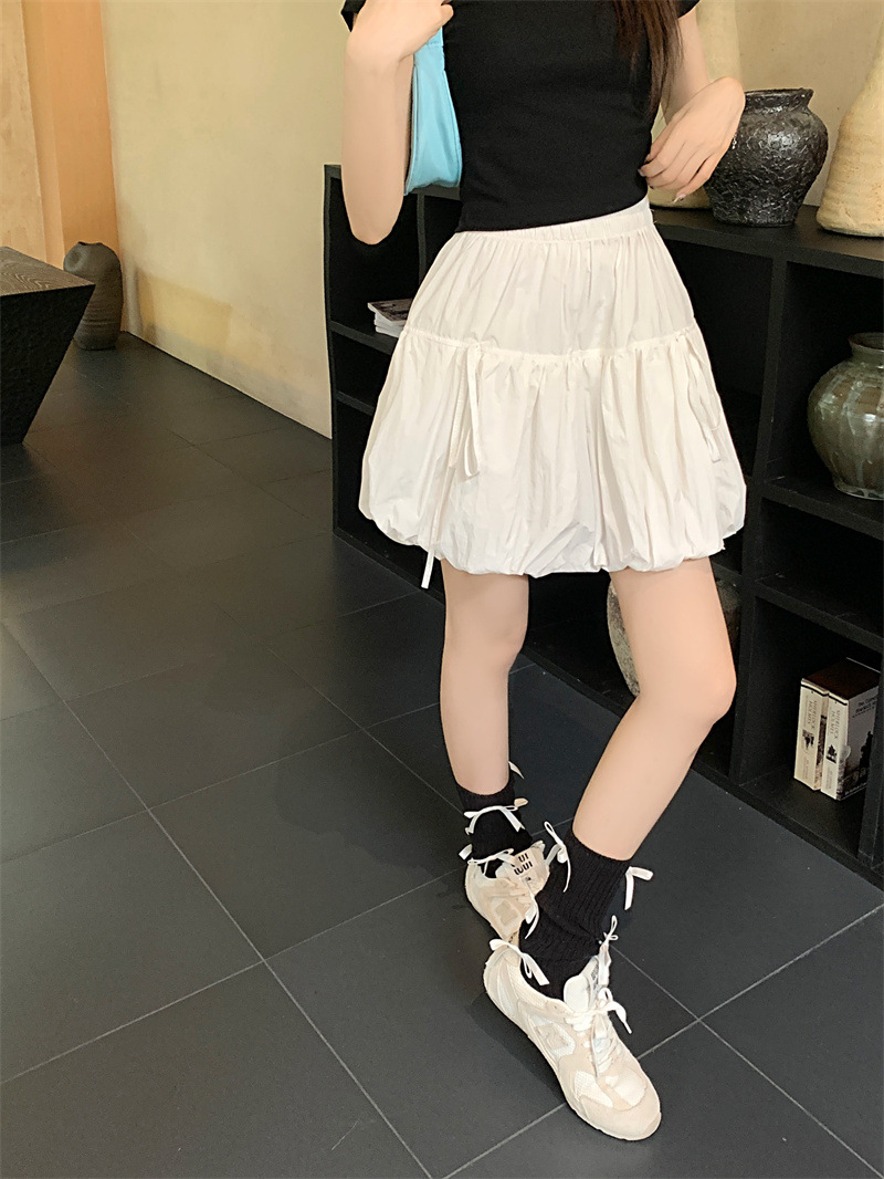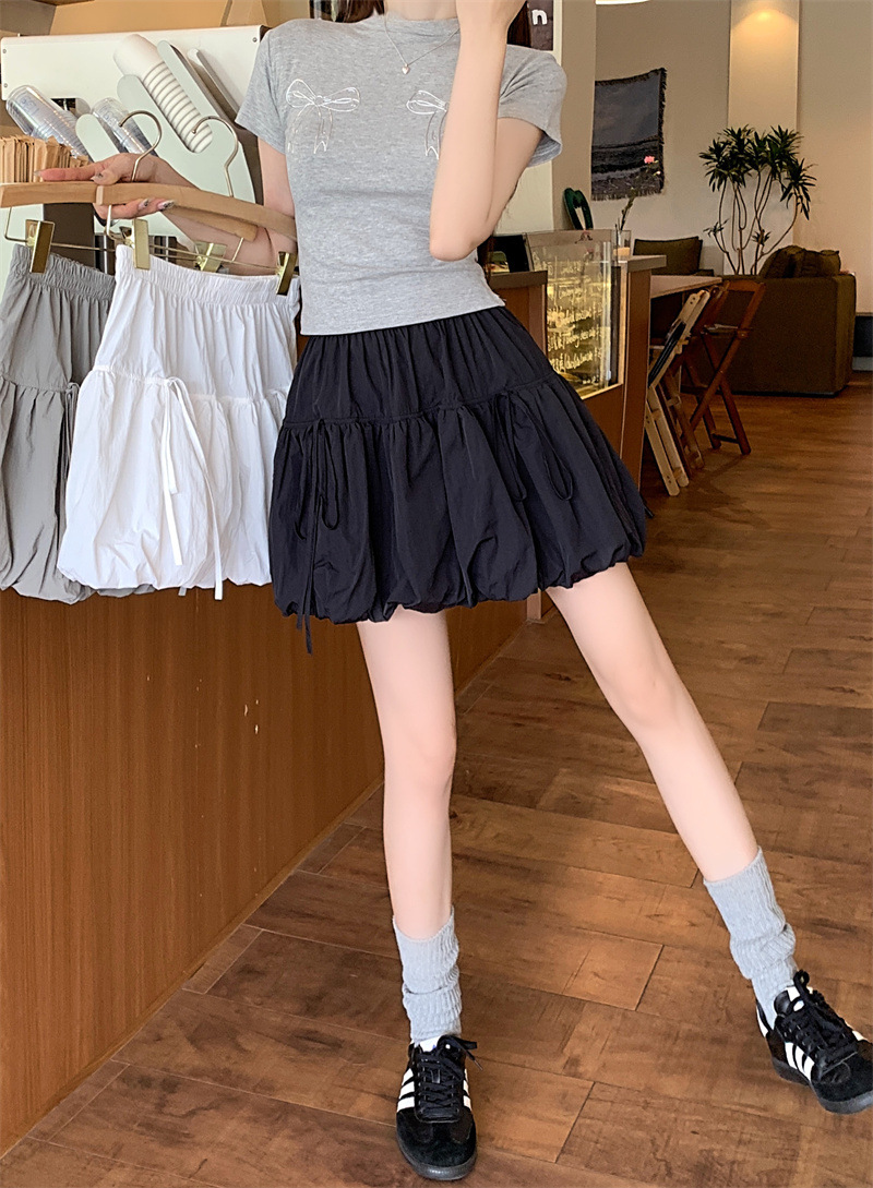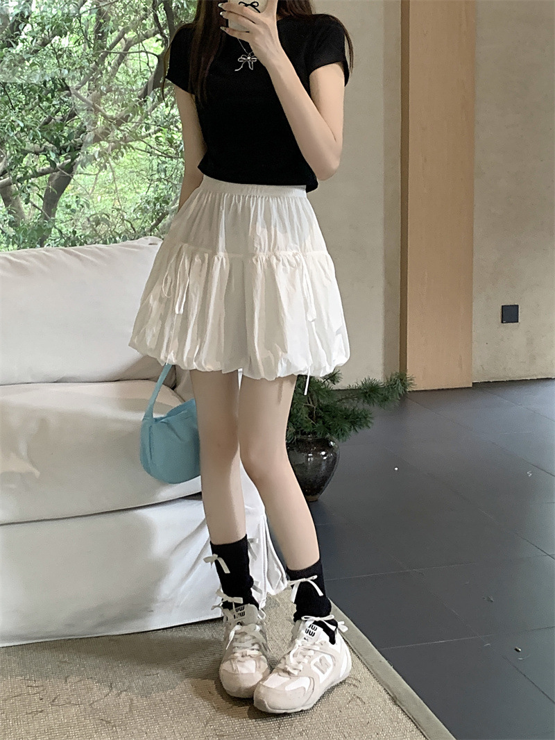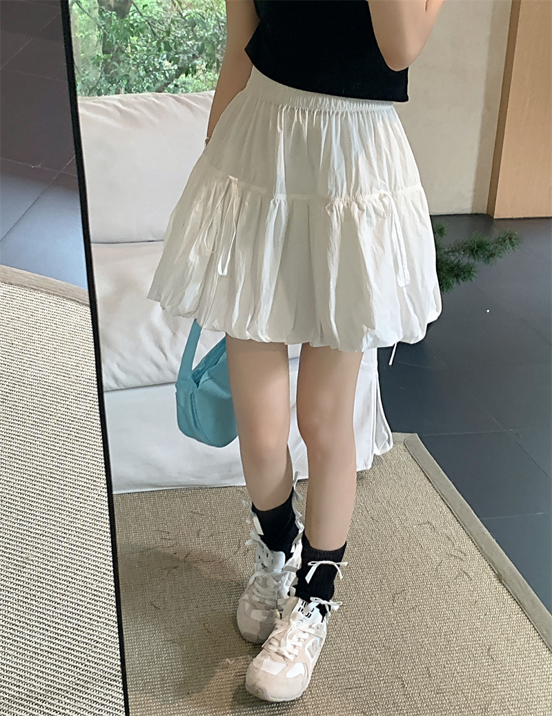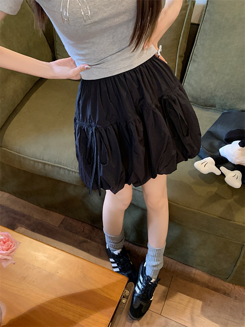 여성을위한 퍼프 스커트 하이 웨이스트 A 라인 버드 플리츠 스커트 여름 2025 새로운 스위트 보우 랜턴 스커트