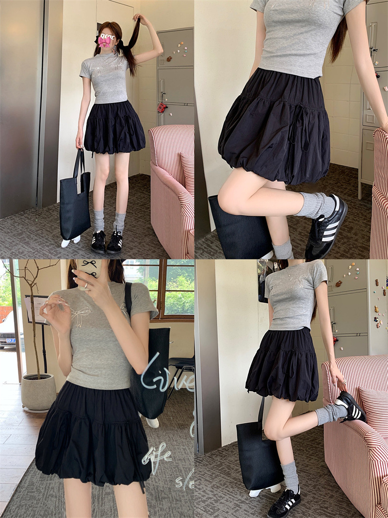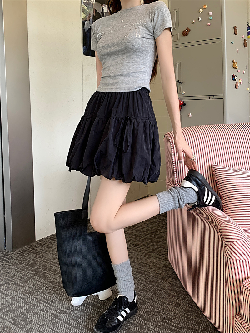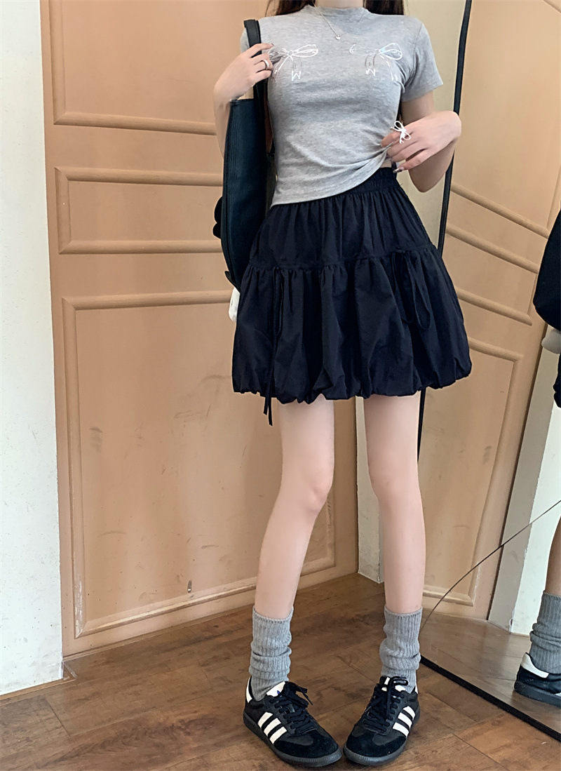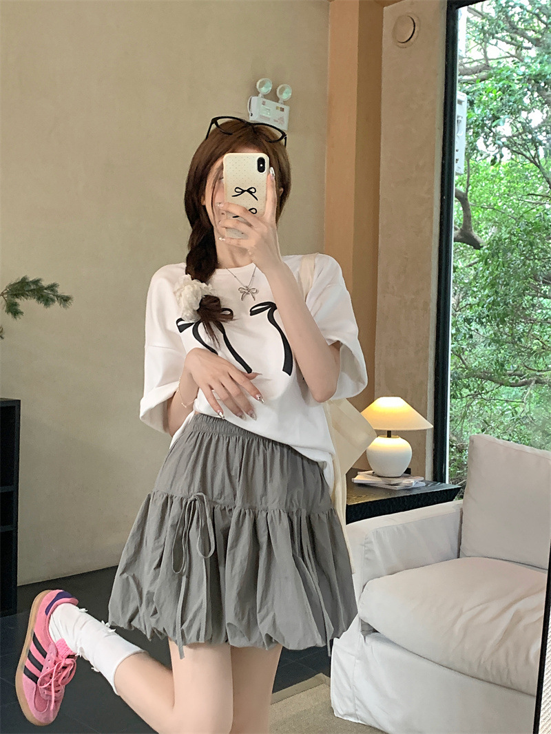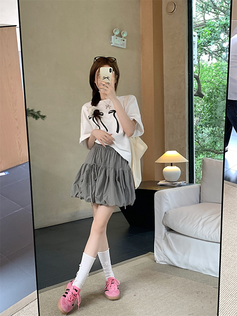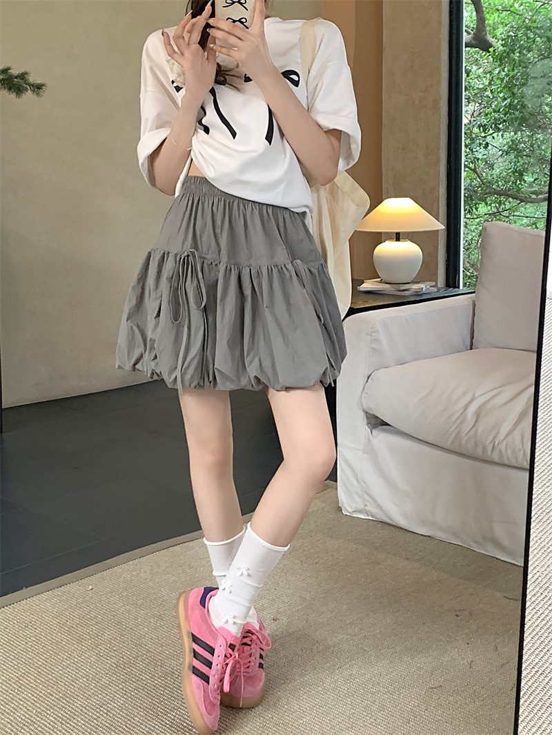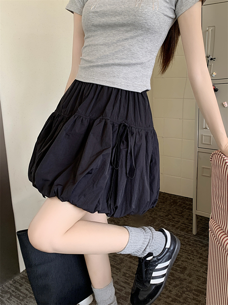 여성을위한 퍼프 스커트 하이 웨이스트 A 라인 버드 플리츠 스커트 여름 2025 새로운 스위트 보우 랜턴 스커트