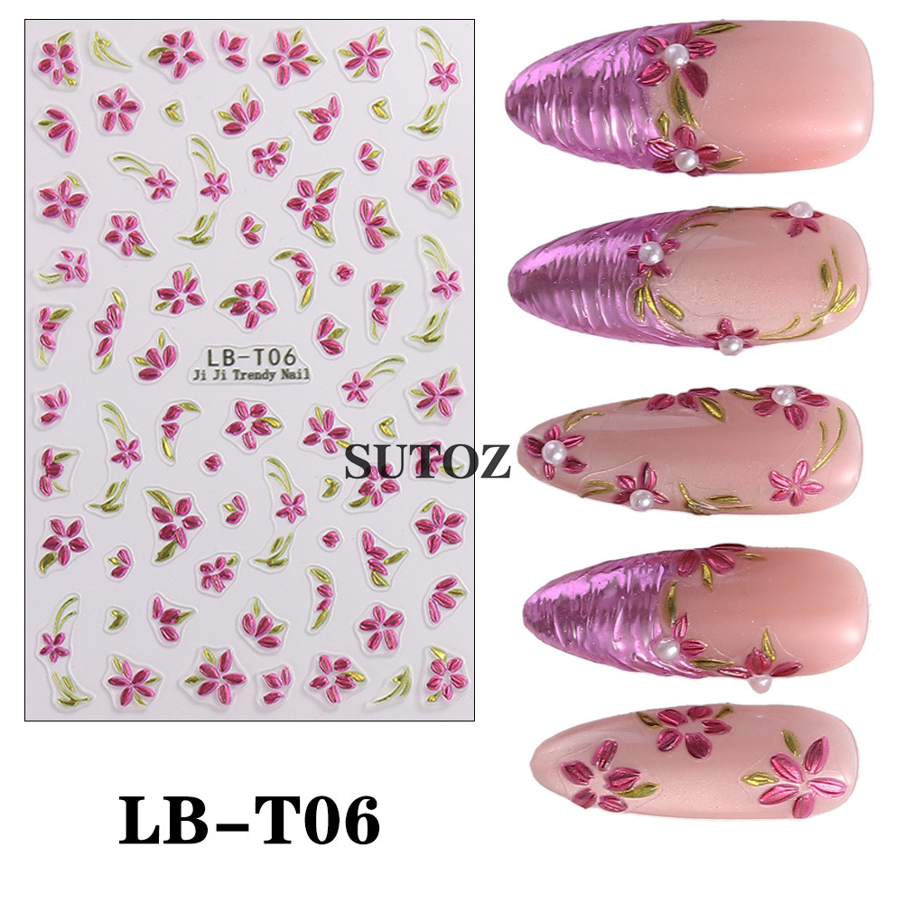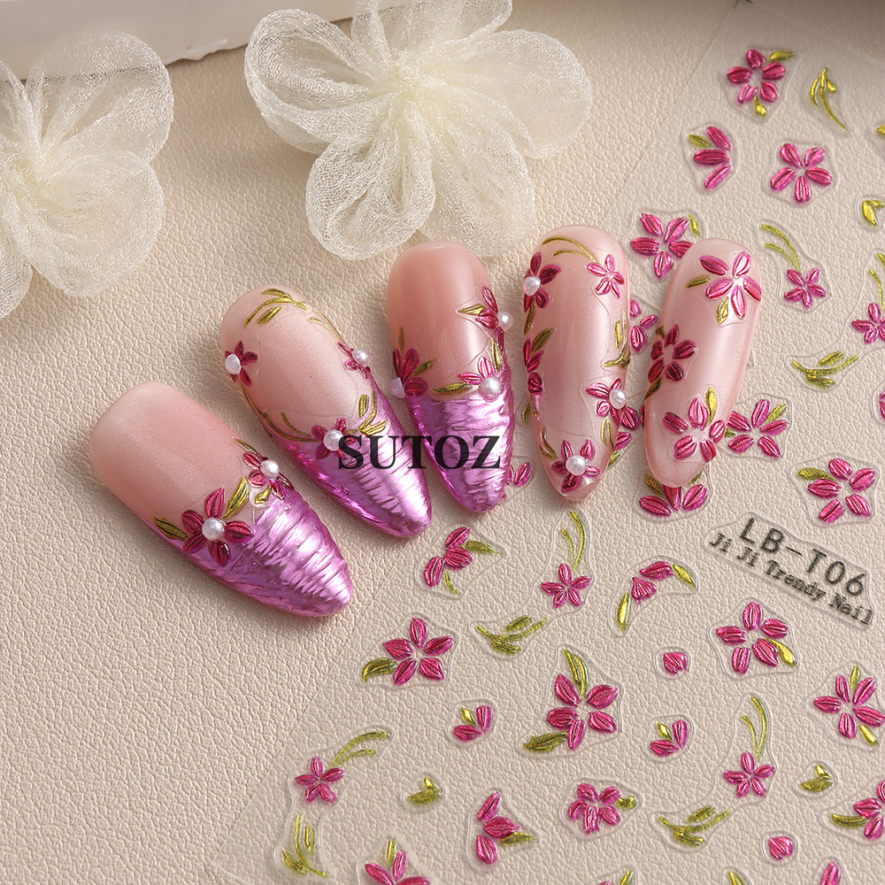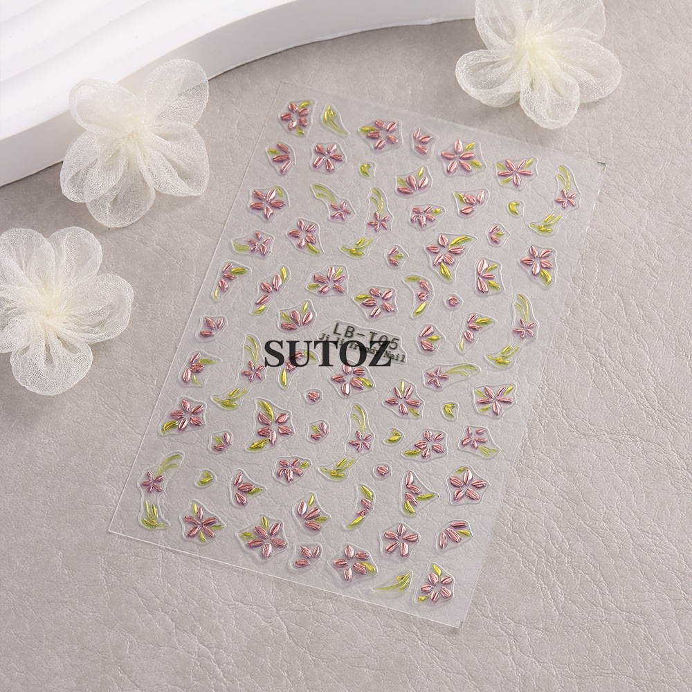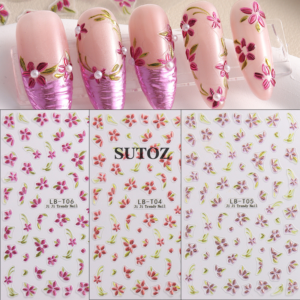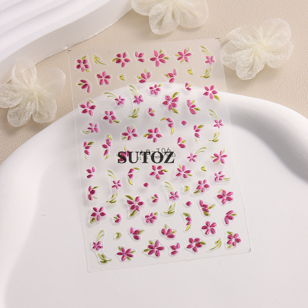 2025 국경 뉴 네일 아트 스티커 봄 신선하고 부드러운 작은 꽃 3 차원 네일 백 접착 못스토어 가기