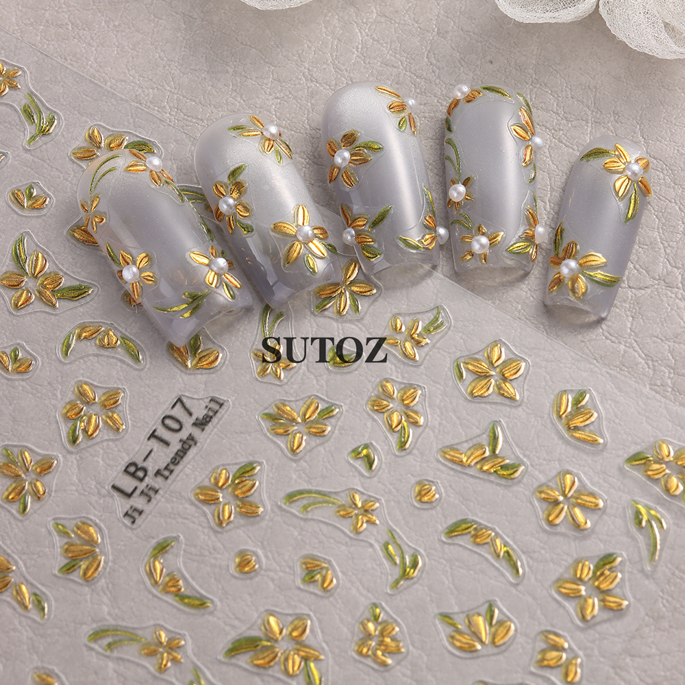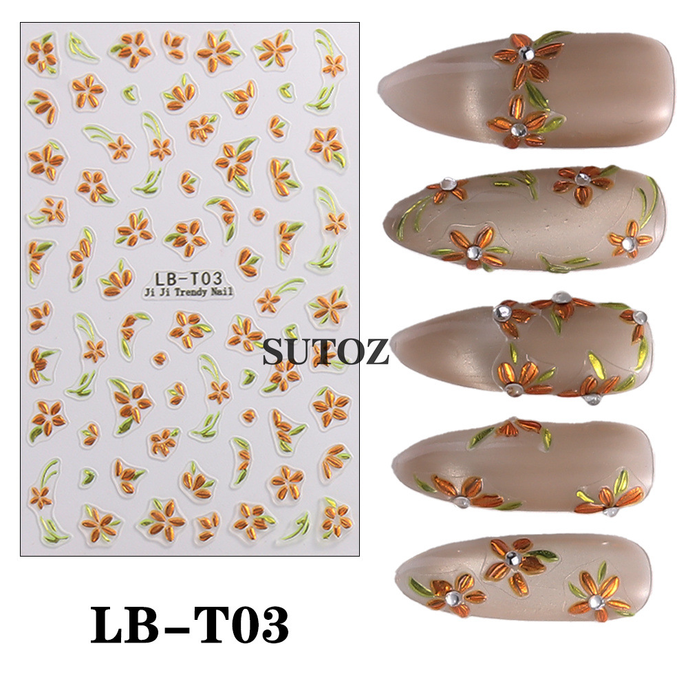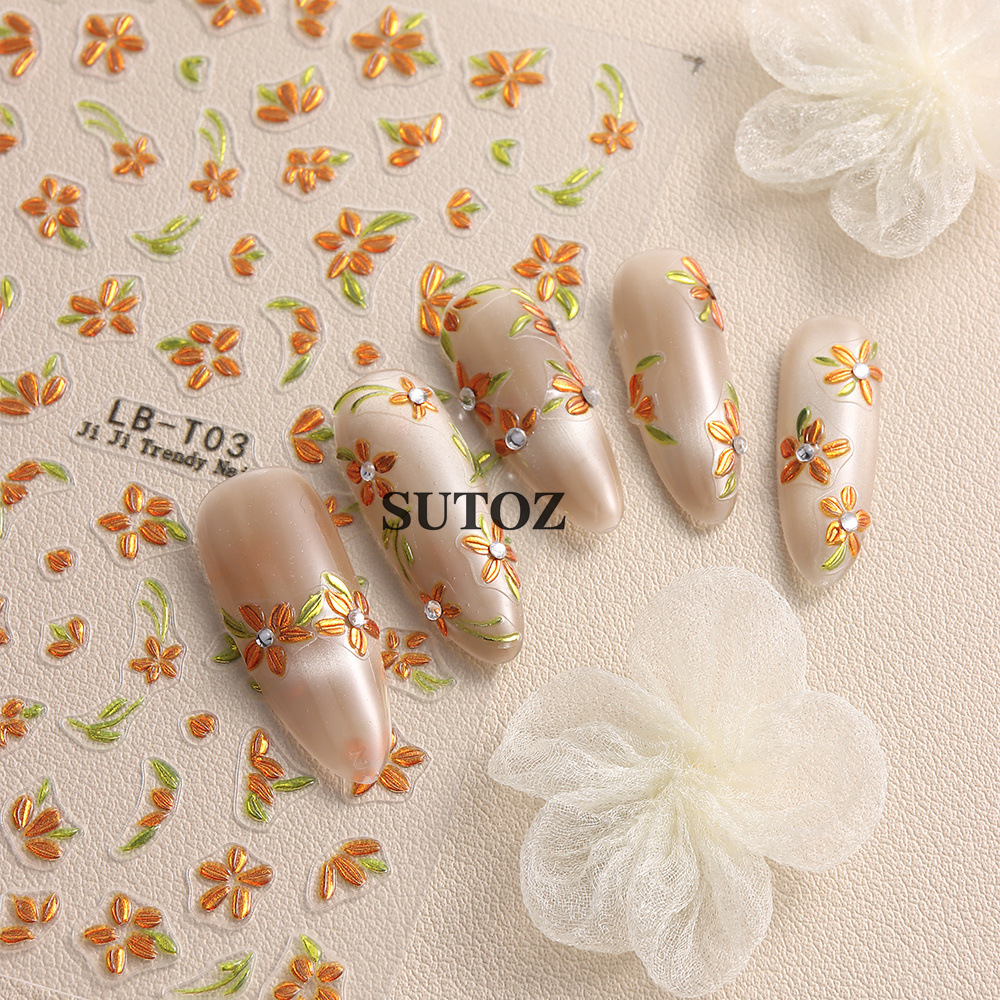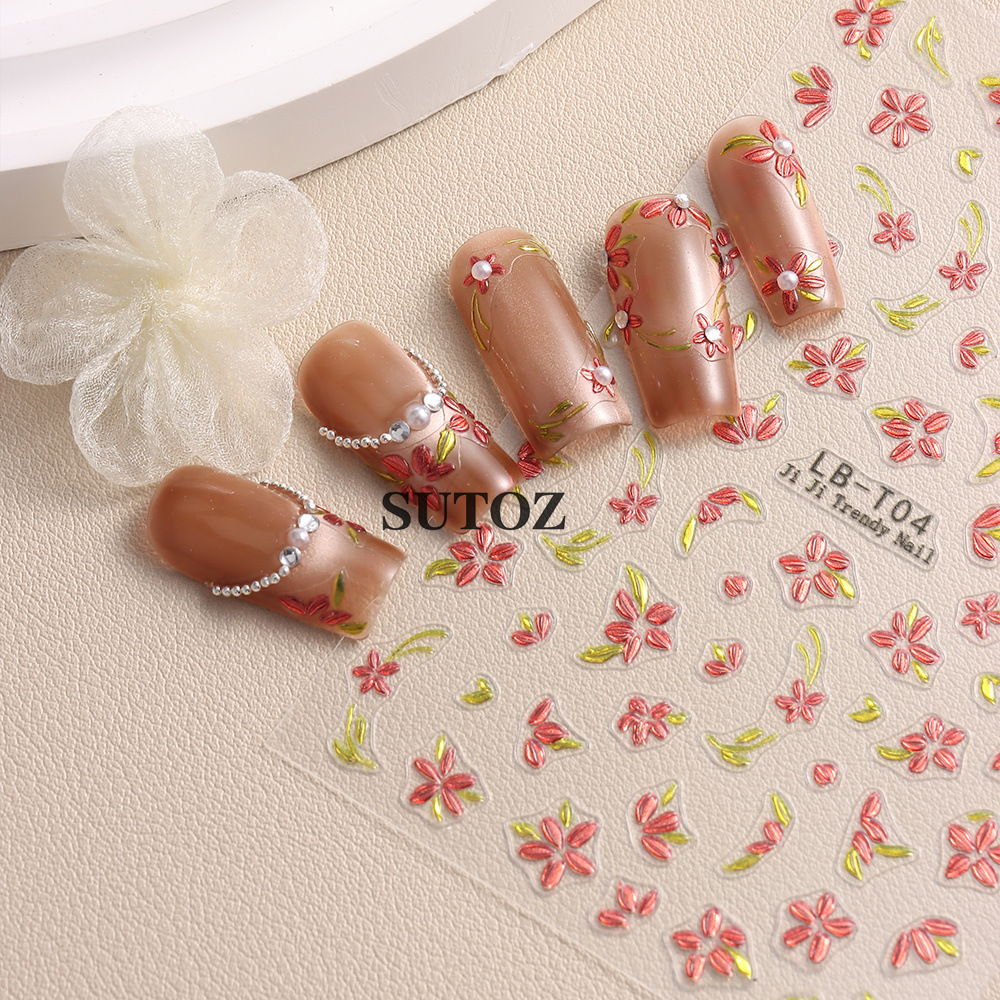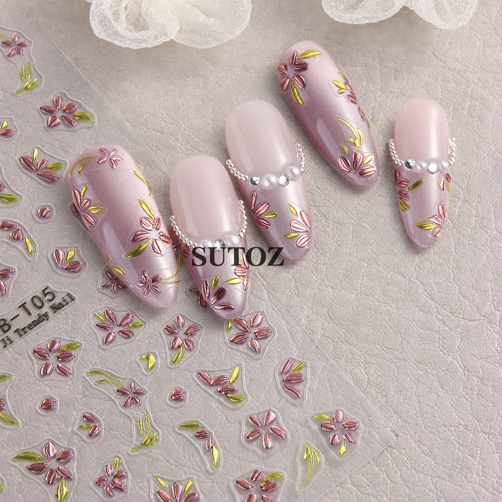 2025 국경 뉴 네일 아트 스티커 봄 신선하고 부드러운 작은 꽃 3 차원 네일 백 접착 못스토어 가기