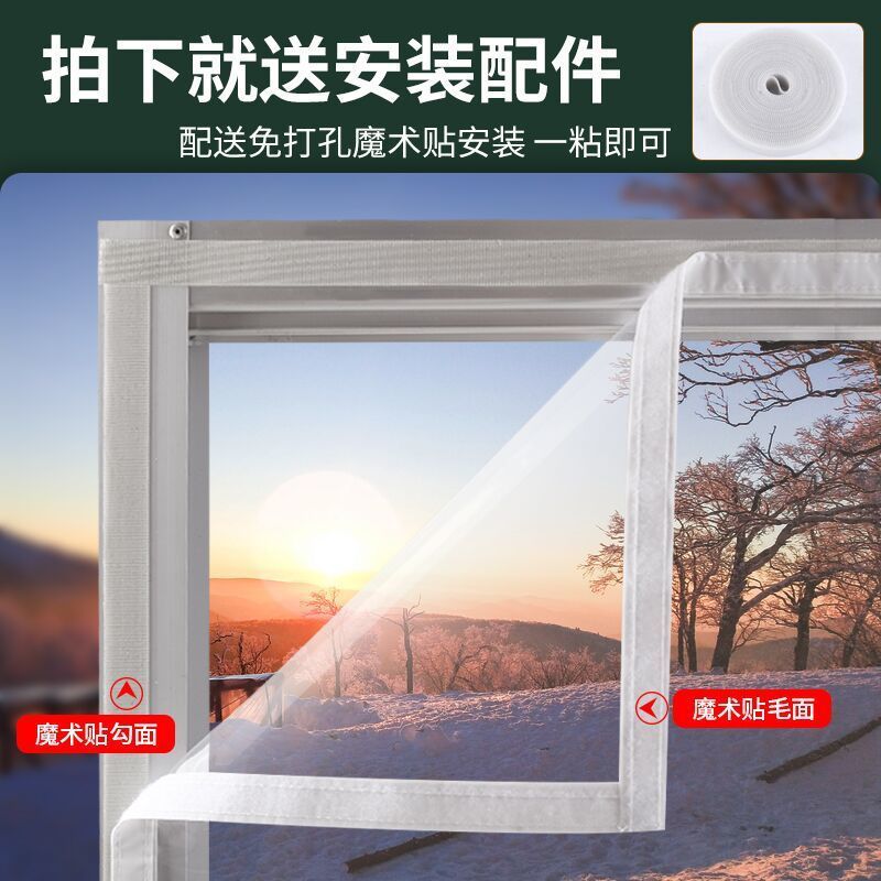 겨울용 지퍼가 달린 창문, 방풍 및 방풍 보온 필름 씰, 방한용 두꺼운 단열재, 투명 커튼