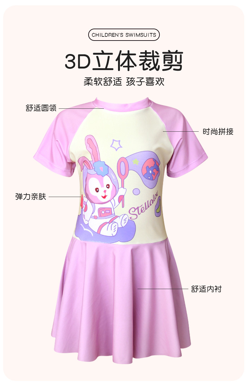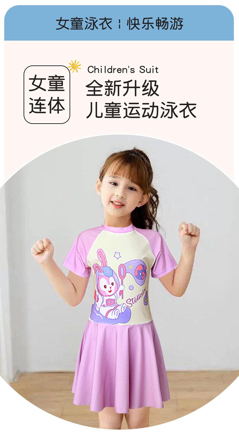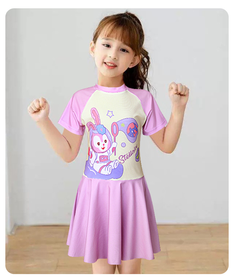 여아 수영복 원피스 수영복, 중대형 아동용 반팔 속건성 온천 수영복, 귀여운 만화 스타일 서핑 수영복스토어 가기