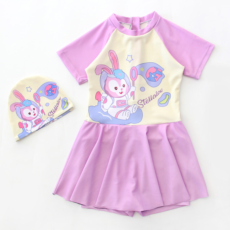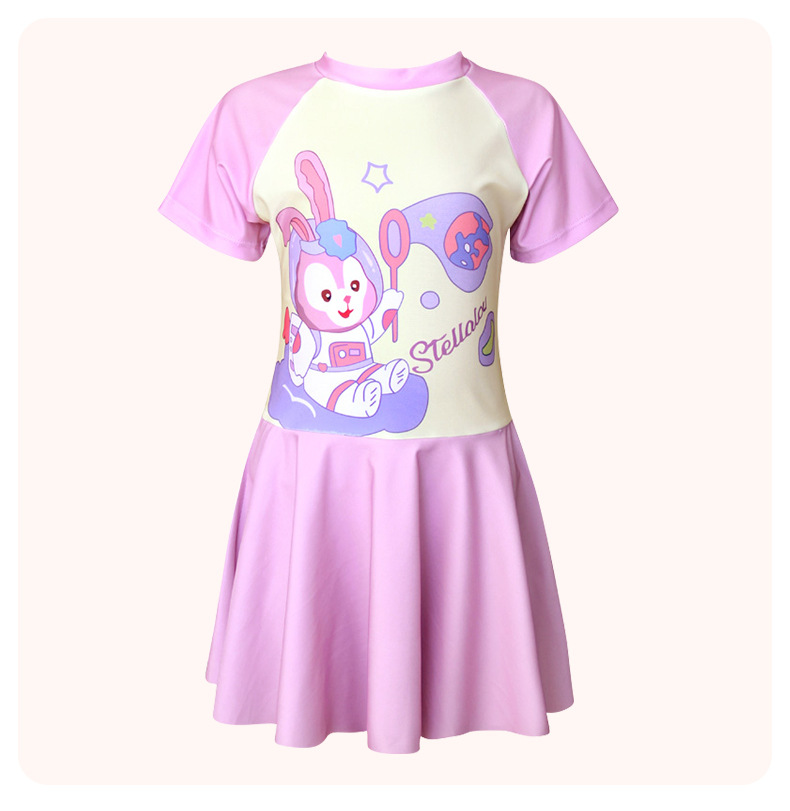 여아 수영복 원피스 수영복, 중대형 아동용 반팔 속건성 온천 수영복, 귀여운 만화 스타일 서핑 수영복