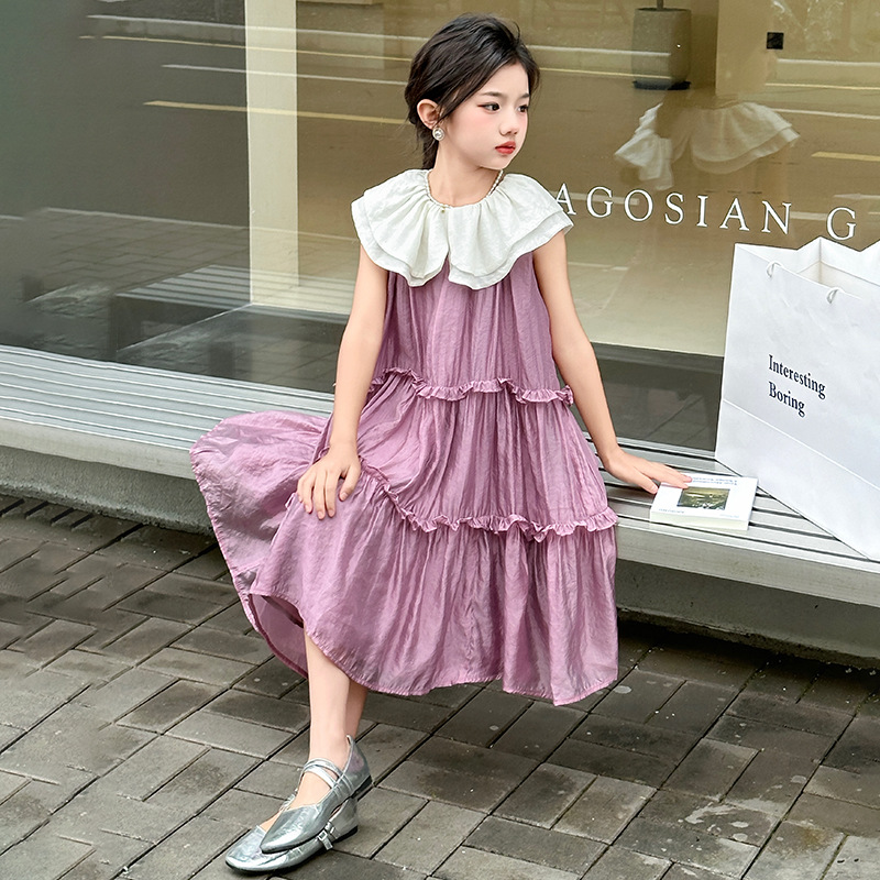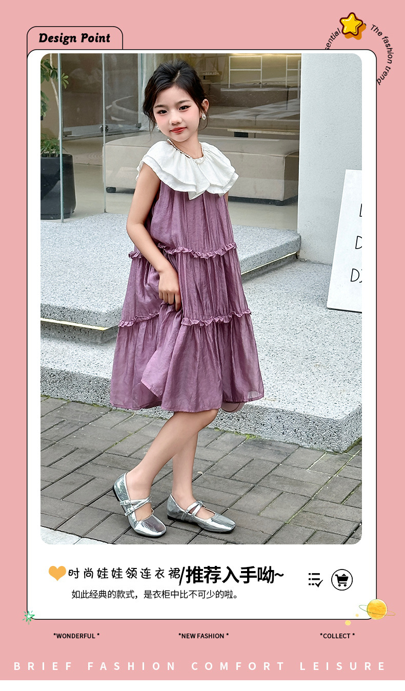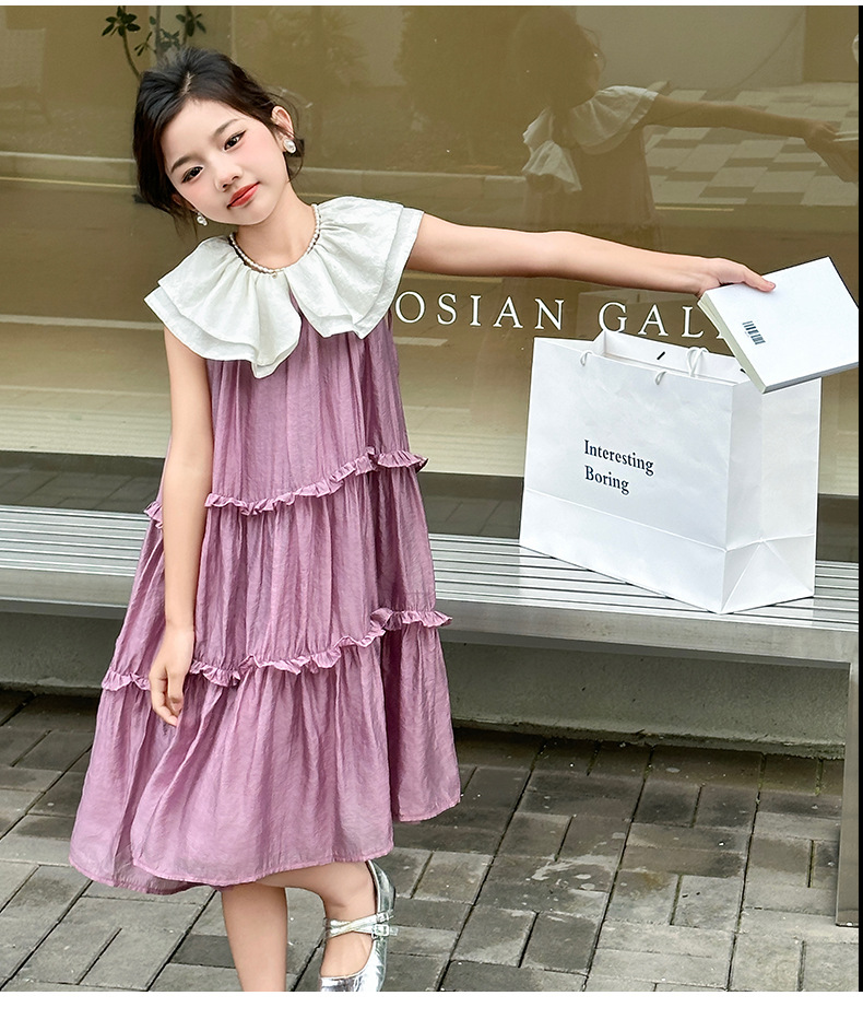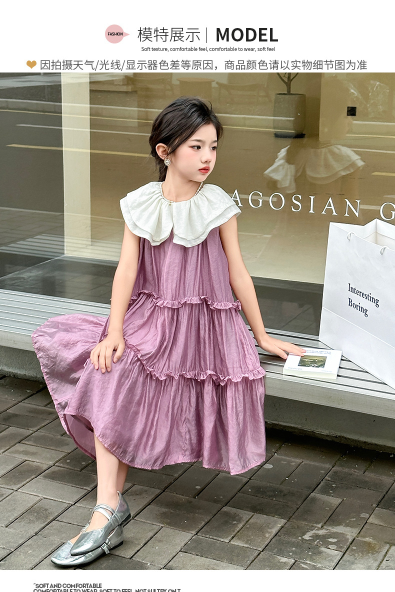 소녀 인형 칼라 원피스 2025 새로운 한국식 민소매 선박 원피스 소녀의 우아한 레이스 공주 원피스 여름 원피스스토어 가기