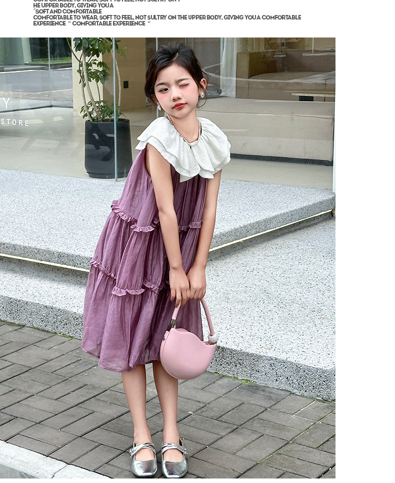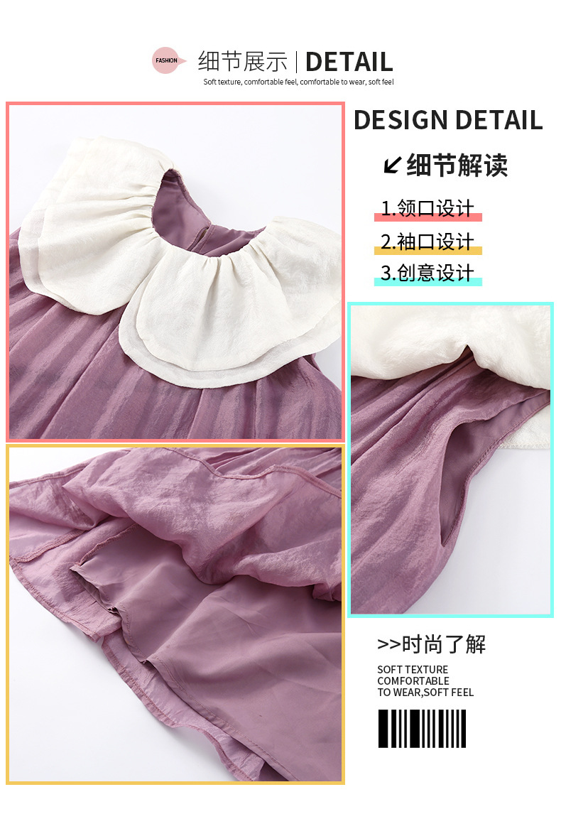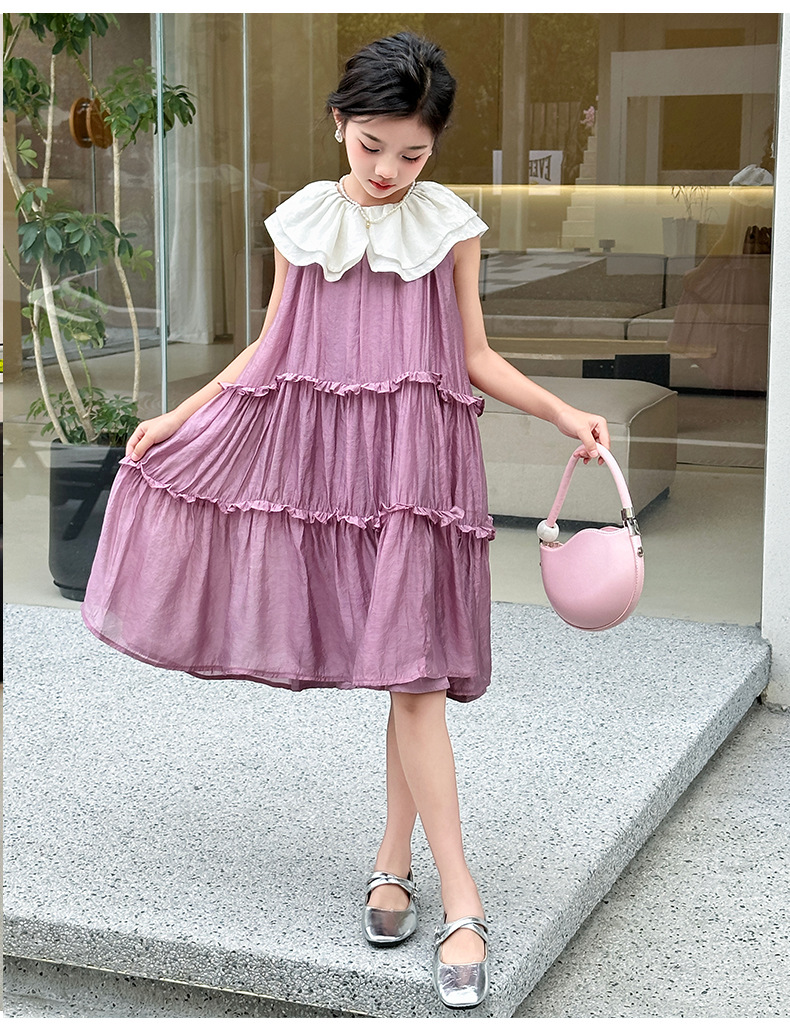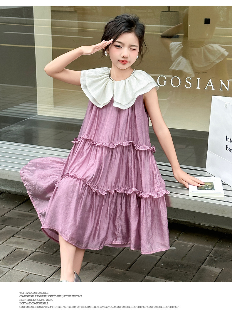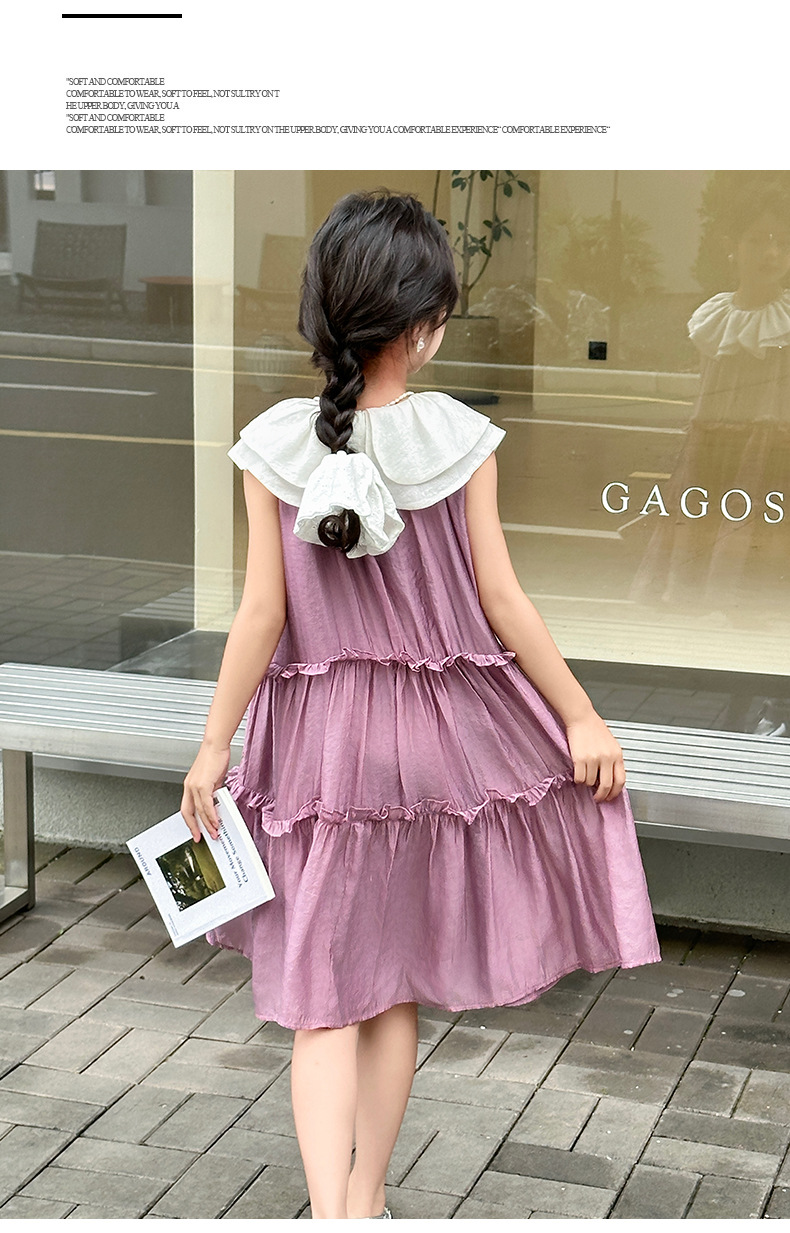 소녀 인형 칼라 원피스 2025 새로운 한국식 민소매 선박 원피스 소녀의 우아한 레이스 공주 원피스 여름 원피스스토어 가기