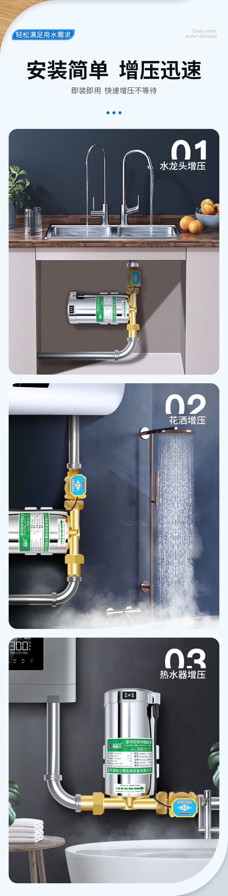 Henggeer 부스터 펌프 가정용 완전 자동 저음 태양열 온수기 목욕 수돗물 파이프라인 가압 워터 펌프스토어 가기