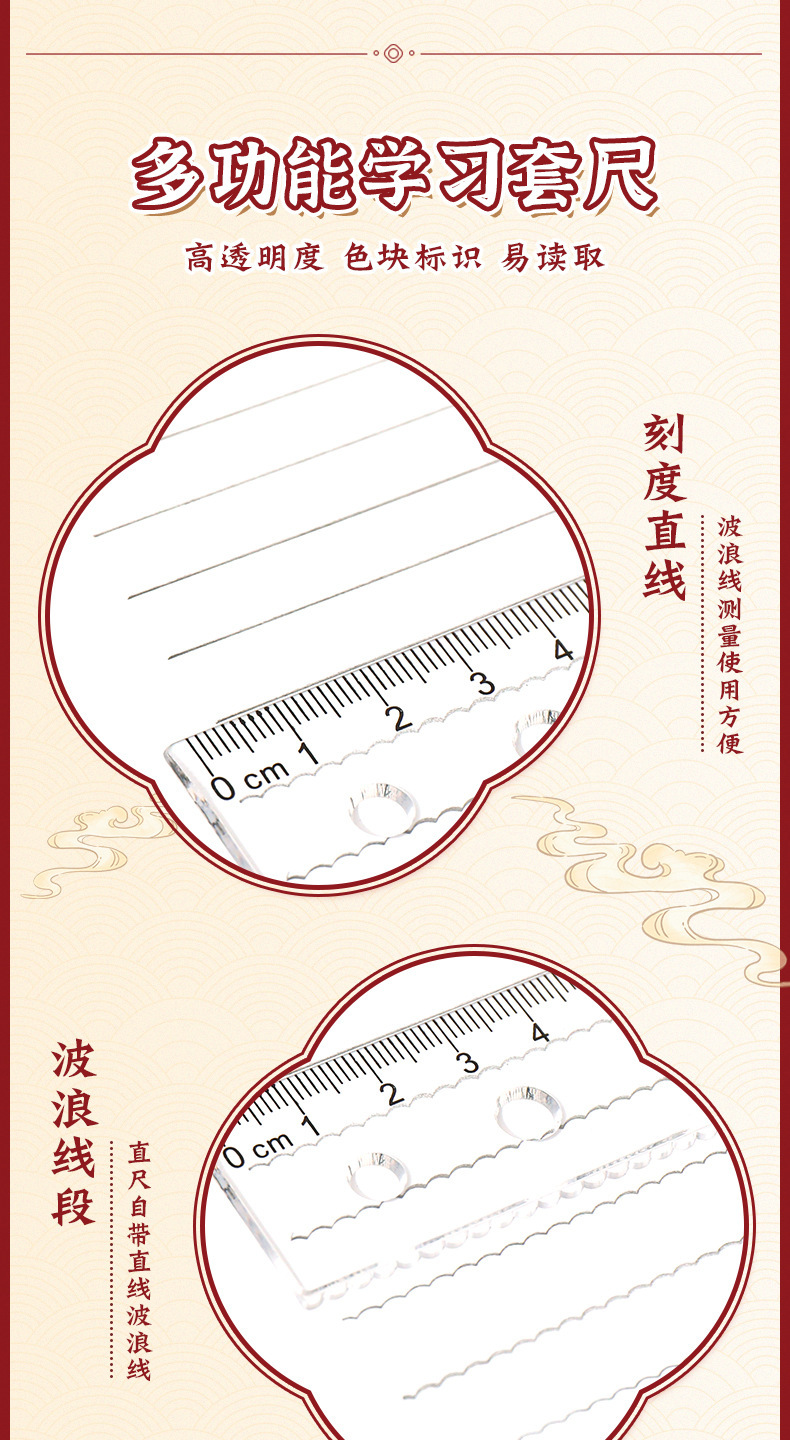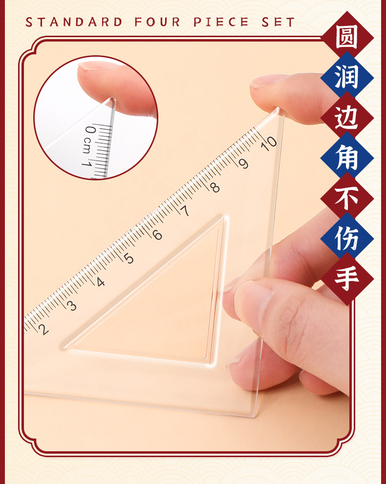 영감을 주는 텍스트 눈금자 세트 학생 수학 수업 장 특수 눈금자 4피스 투명 세트 눈금자 도매