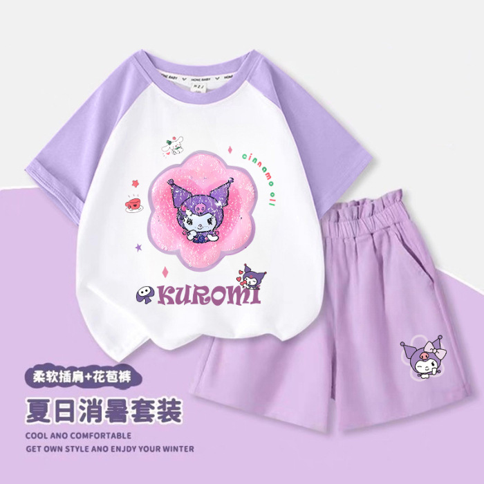 • (보라색과 흰색 투피스 세트) 상의 + 반바지