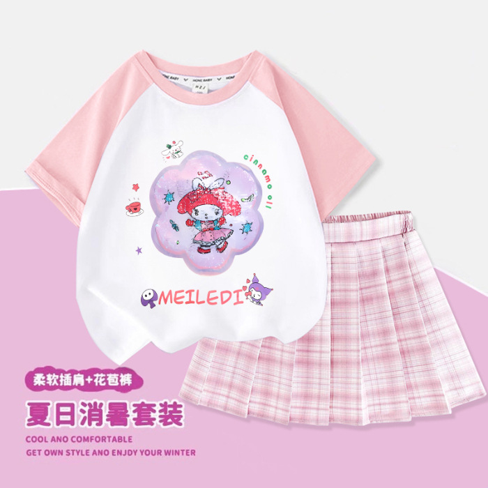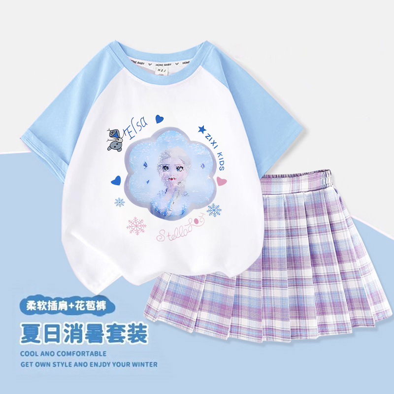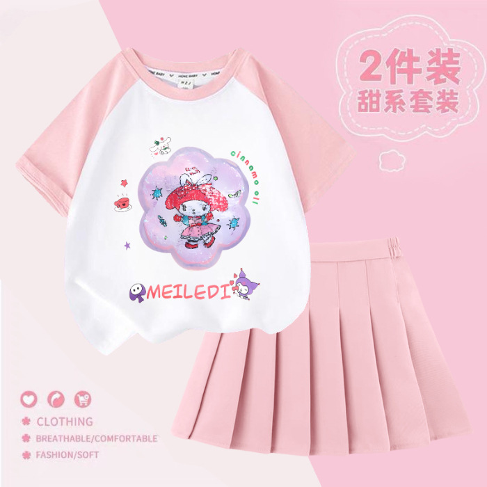 멜로디 소녀 세트 여름 2025 새로운 새끼 소녀 대학 스타일 jk 스커트 셔츠 투피스 패션