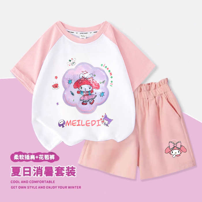• (핑크색과 흰색 투피스 세트) 상의 + 반바지