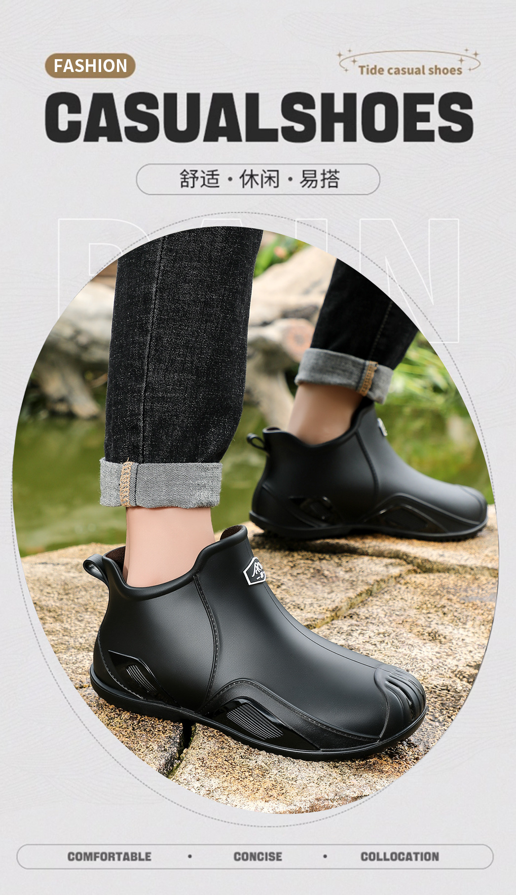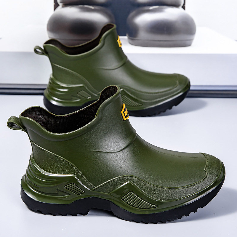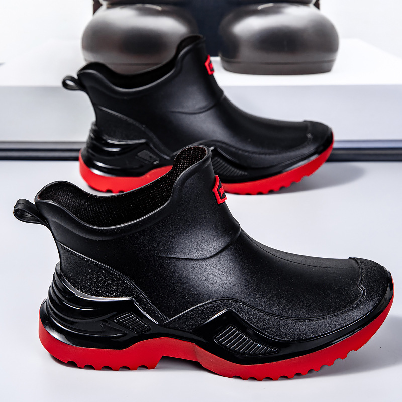 무료 배송 수출용 캐주얼 내구성 패션 짧은 남성용 레인슈즈 두꺼운 주방용 미끄럼 방지 방수 낚시 신발