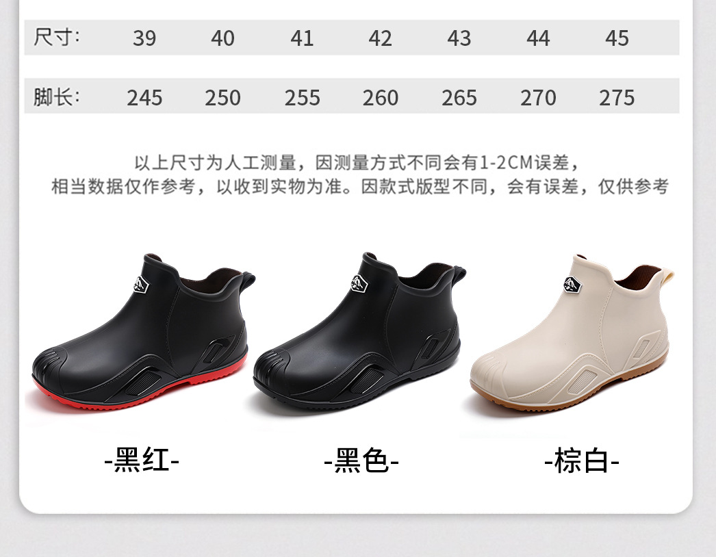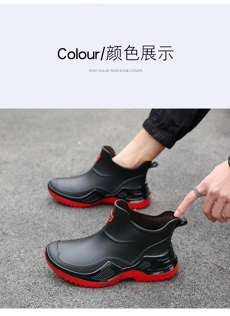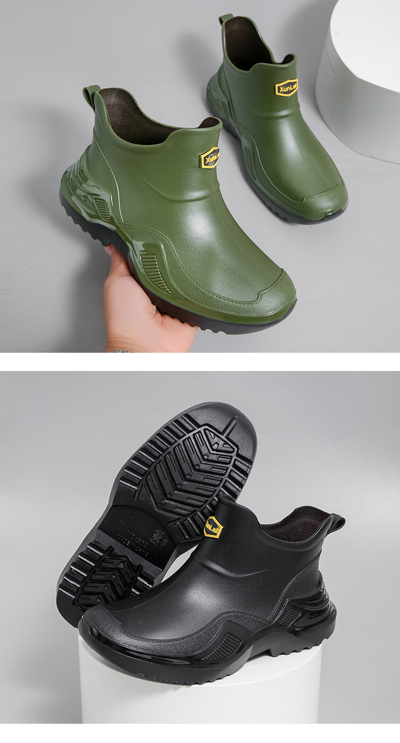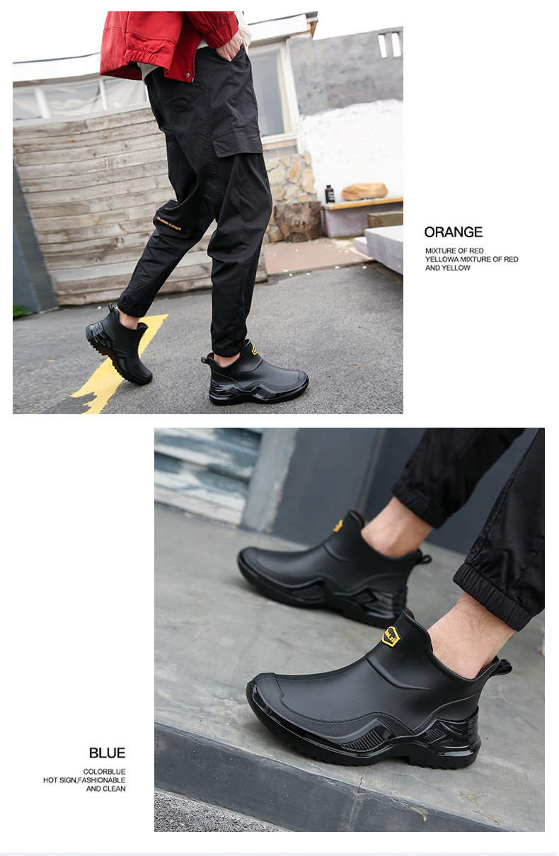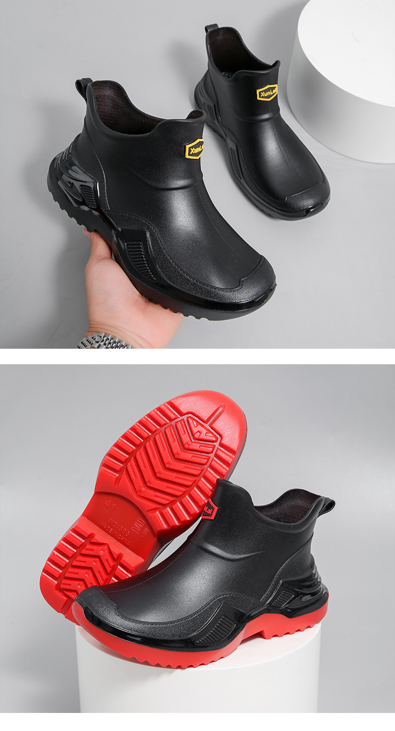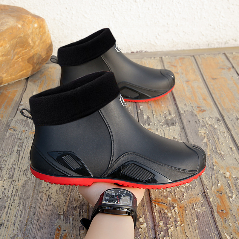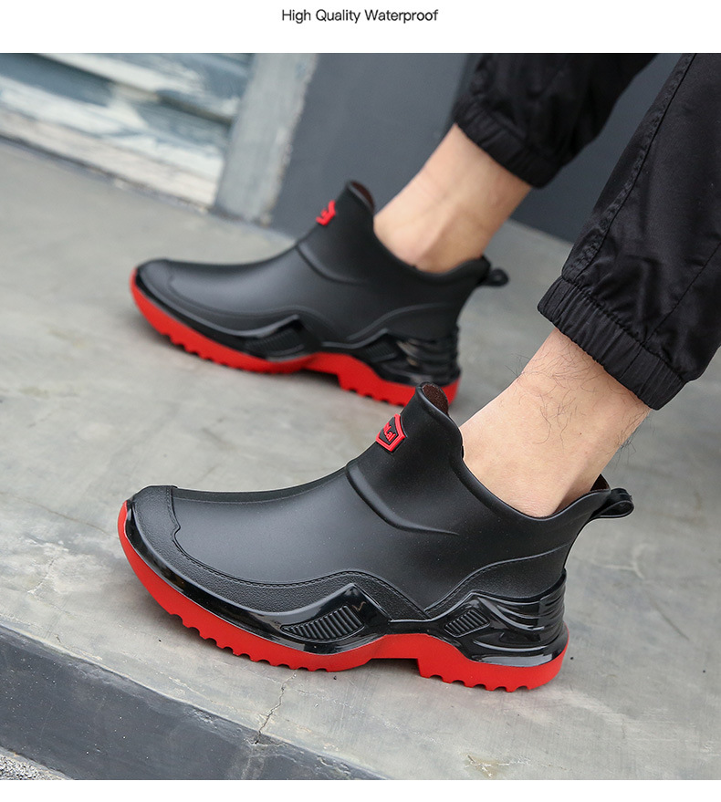 무료 배송 수출용 캐주얼 내구성 패션 짧은 남성용 레인슈즈 두꺼운 주방용 미끄럼 방지 방수 낚시 신발스토어 가기