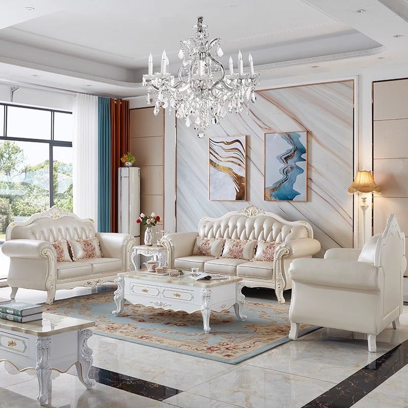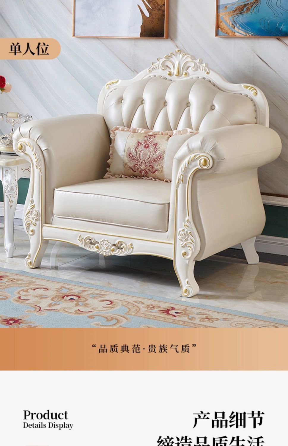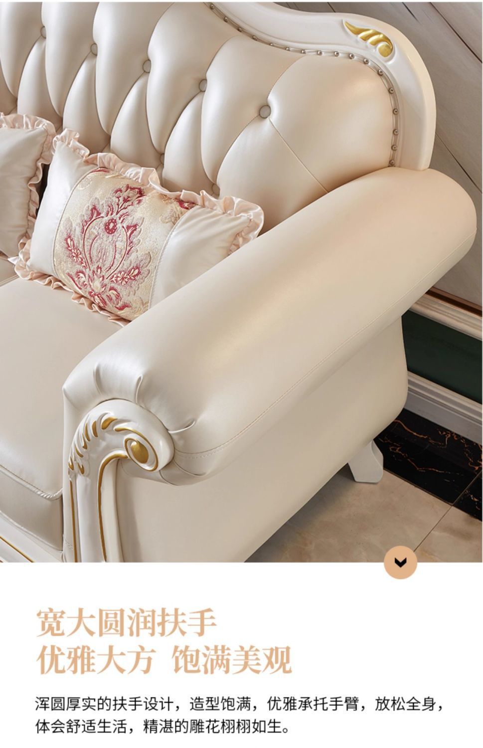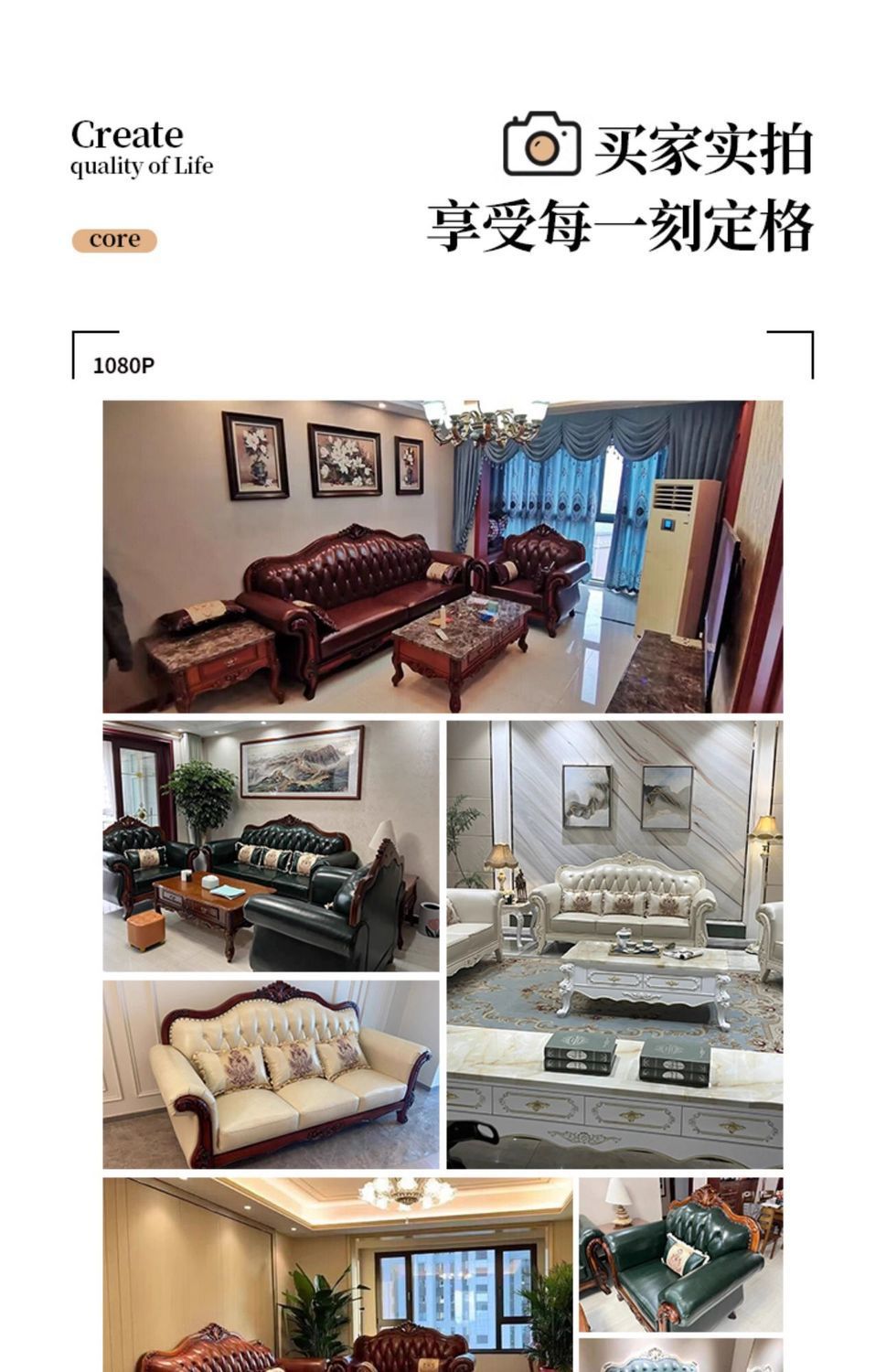 가죽 소파 유럽 스타일 작은 아파트 거실 123 콤비네이션 솔리드 우드 라이트 럭셔리 탑 레이어 럭셔리 Cowhide 소파스토어 가기