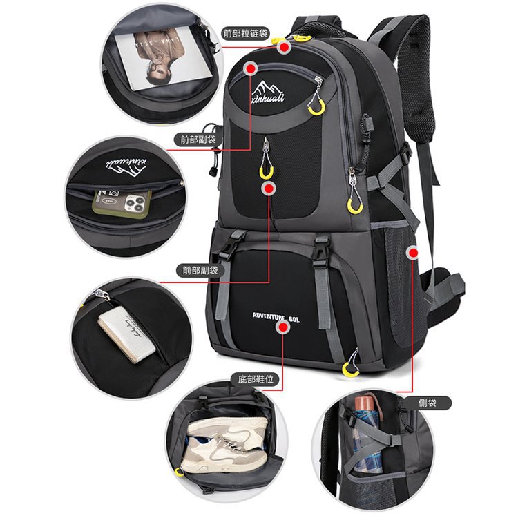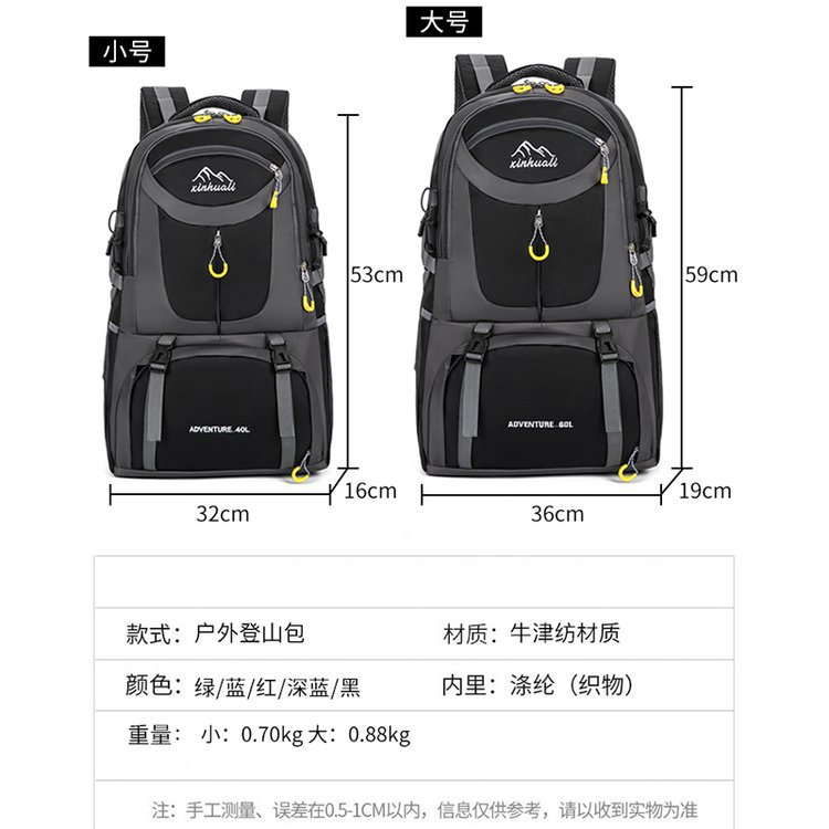 야외 대용량 등산 가방 방수 내마모성 여행 가방 대용량 배낭 다기능 하이킹 수하물 배낭