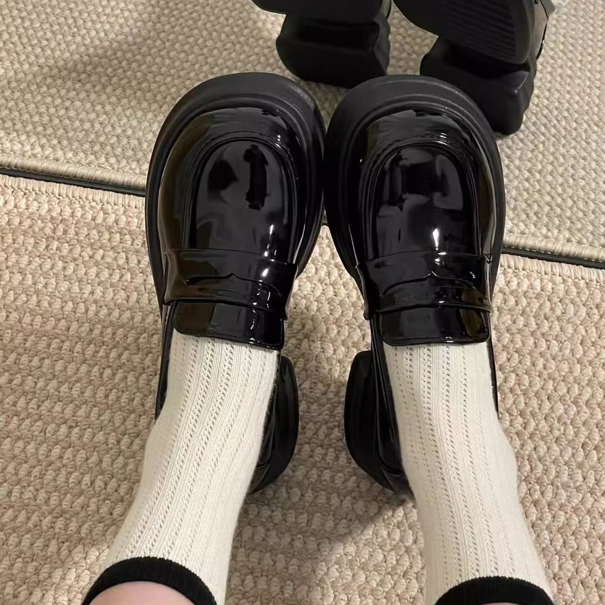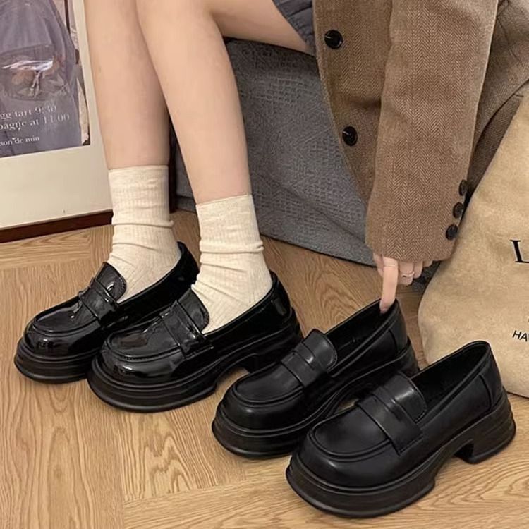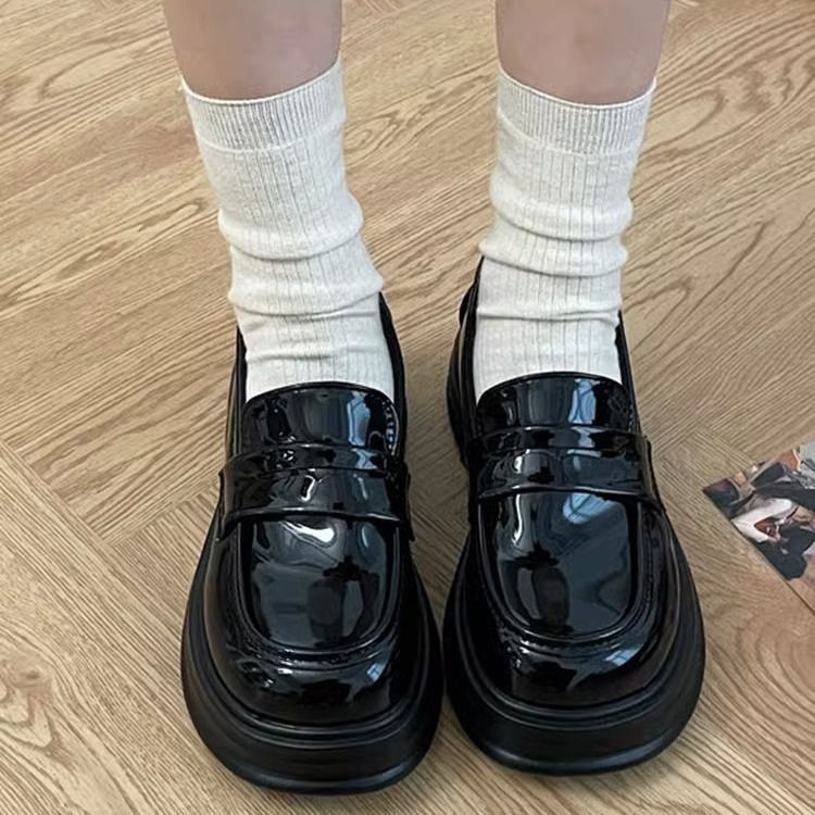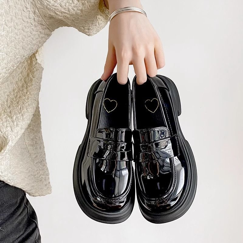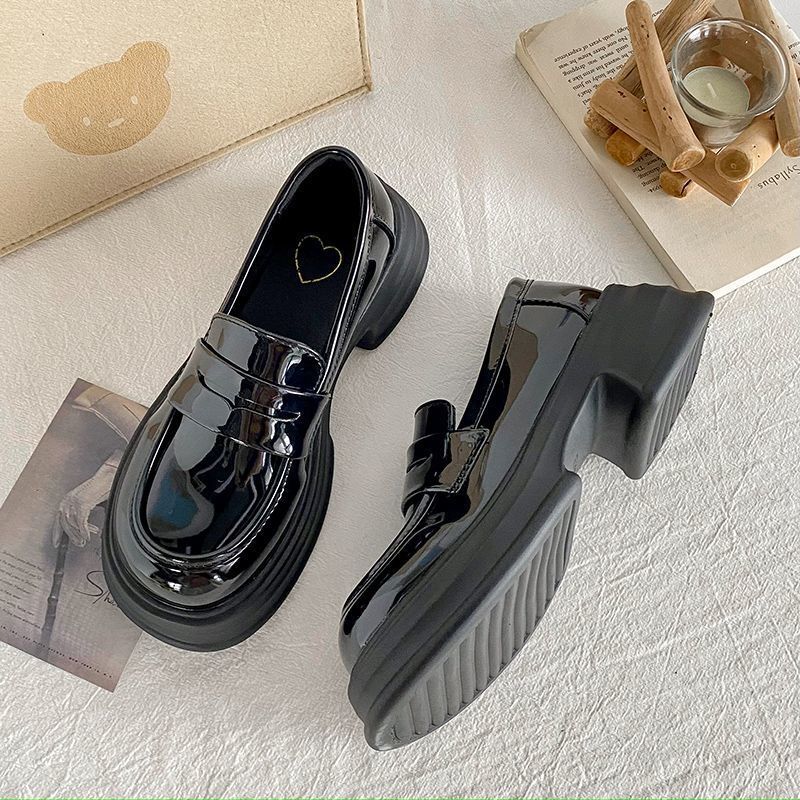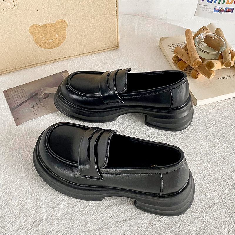 라운드 토 플랫폼 신발 여성 2025 새로운 블랙 대학 스타일 작은 가죽 신발 올 매치 영국 로퍼 jk 유니폼 신발스토어 가기
