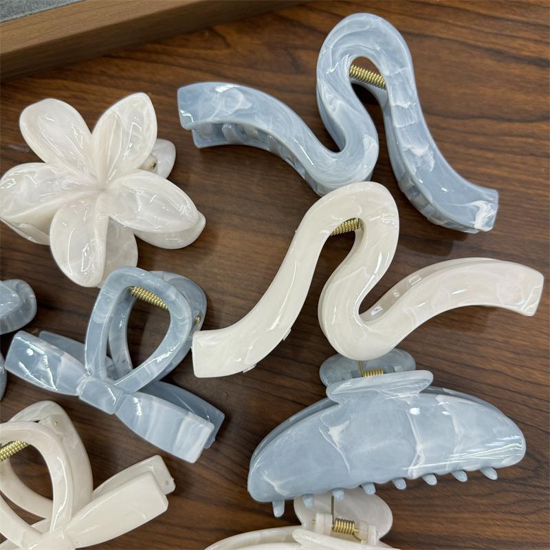 유럽과 미국의 파란색과 흰색의 계란 꽃 잡아 클립 고급 Sizzling 대리석 꽃 상어 클립 머리 3 차원 헤어핀 헤어 액세서리
