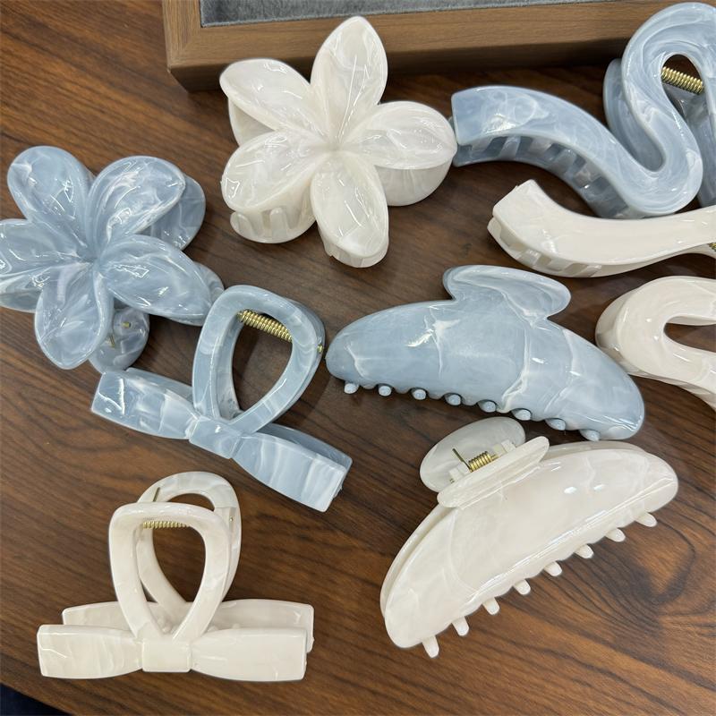 欧美跨境鸡蛋花抓夹紫荆花发夹节日高级感女式后脑勺鲨鱼夹发饰欧美跨境彩色鸡蛋花抓夹云纹花朵发夹复古大理石纹渐变色鲨鱼夹