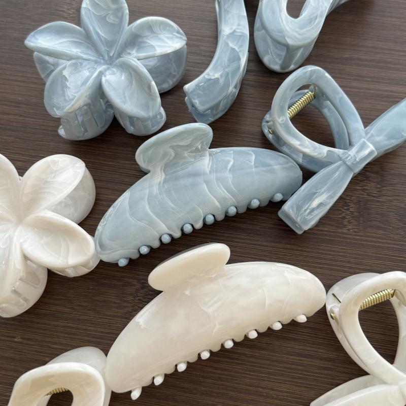 유럽과 미국의 파란색과 흰색의 계란 꽃 잡아 클립 고급 Sizzling 대리석 꽃 상어 클립 머리 3 차원 헤어핀 헤어 액세서리스토어 가기