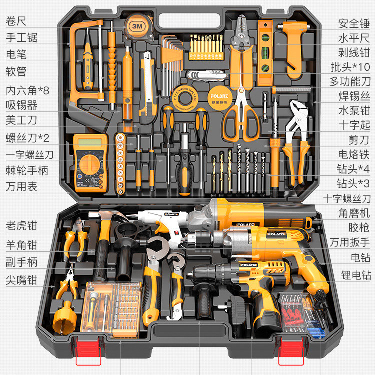 도구 상자 세트 가정용 다기능 전기 드릴 목공 전기 하드웨어 일일 유지 보수 조합 도구 세트