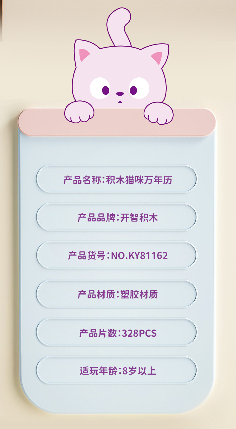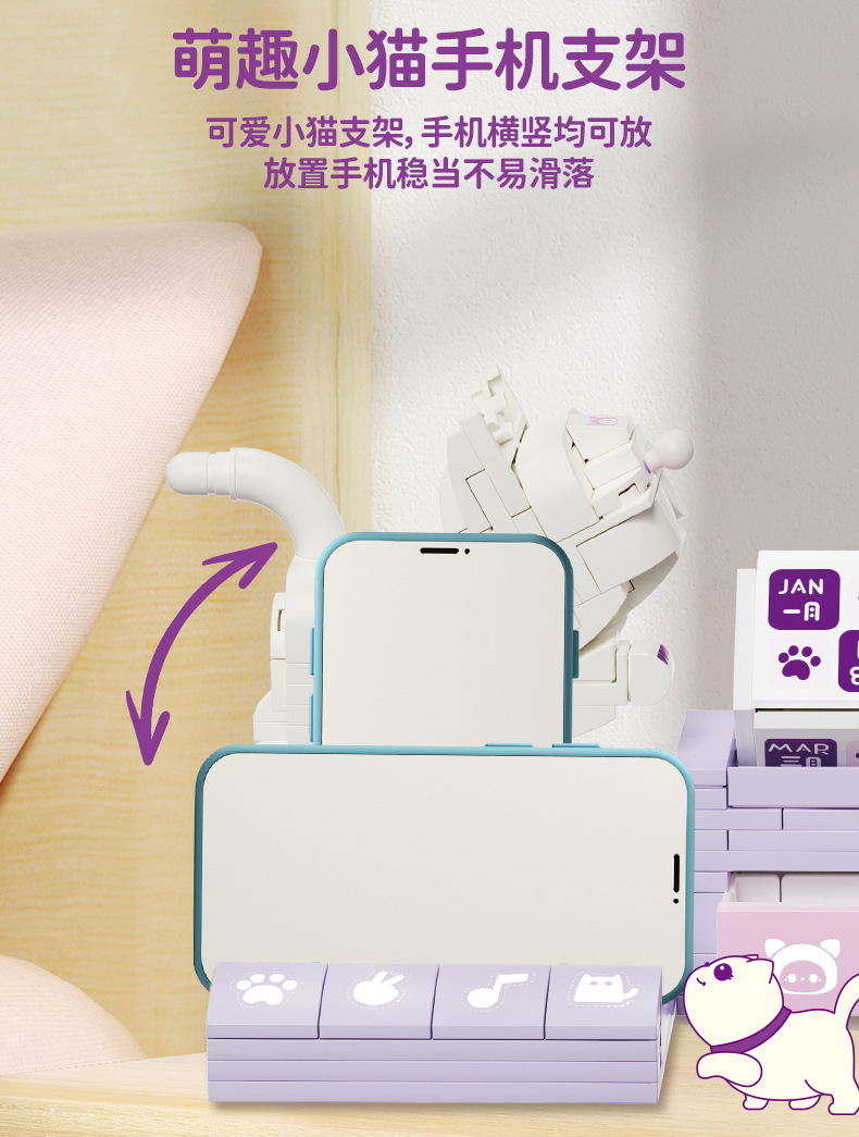 KaiZhi 귀여운 고양이 영구 달력 게으른 고양이 소원 공 크리 에이 티브 장식품 빌딩 어린이 교육 빌딩 블록 장난감스토어 가기