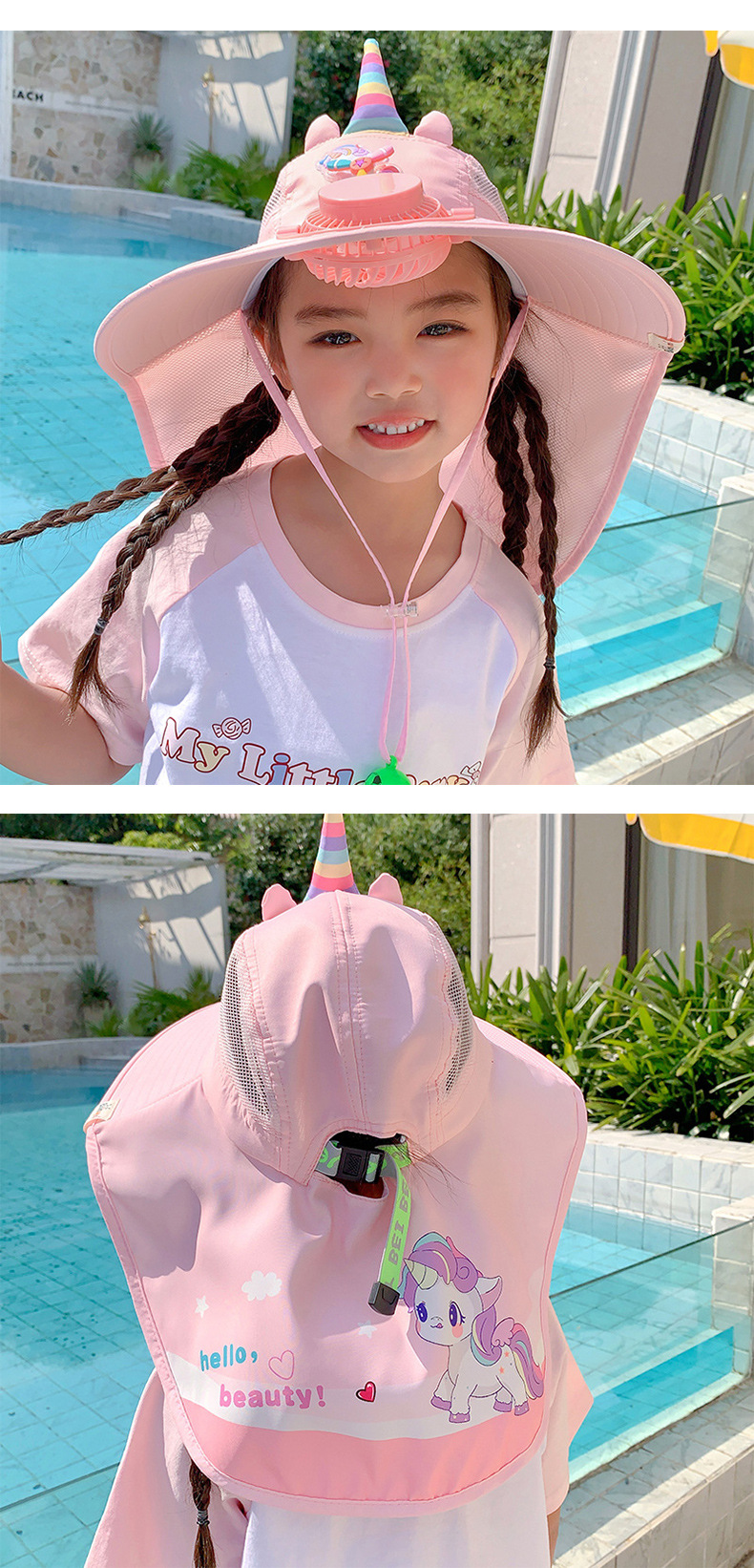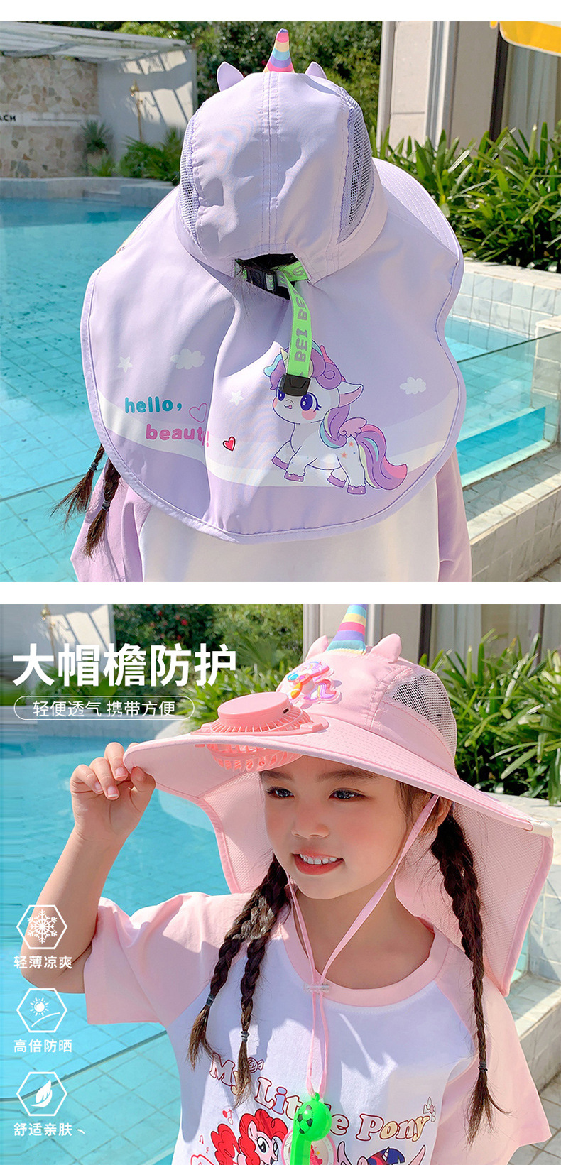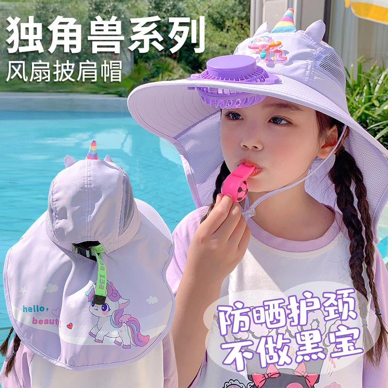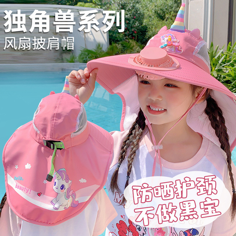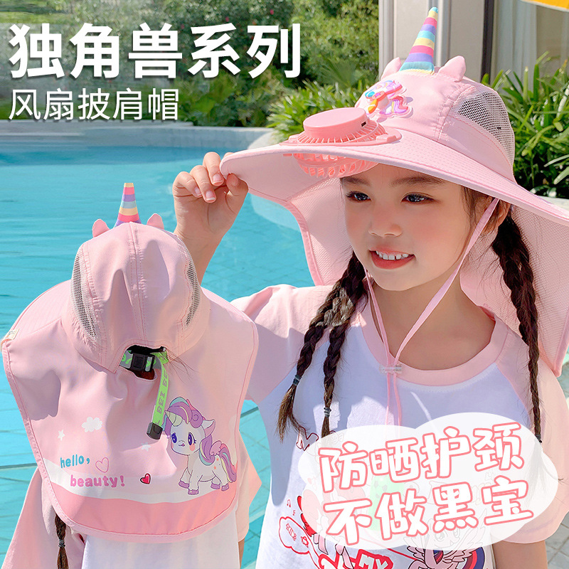 어린이 유니콘 선스크린 모자 팬과 함께 여름 그늘 목도리 모자 큰 모자 남자 및 여자 외출 목 보호 태양 모자