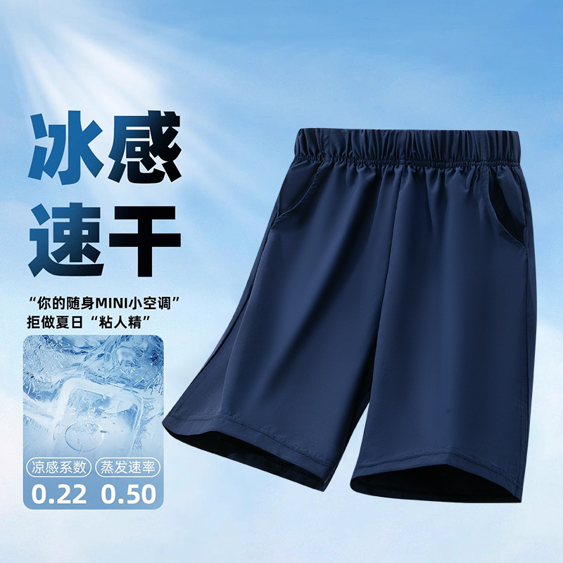 아동복 소년 반바지 여름 어린이 얇은 얼음 느낌 스포츠 바지 소년 5 점 바지 소녀 빠른 건조 트렌디 중간 길이 바지