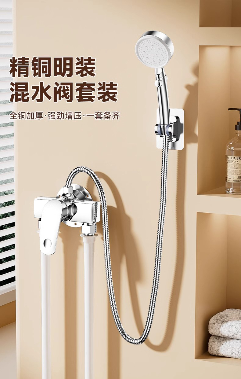 표면 장착형 냉온수 혼합 밸브 샤워 헤드 세트 노출형 수도꼭지 스위치 밸브 레인 태양열 전기 온수기