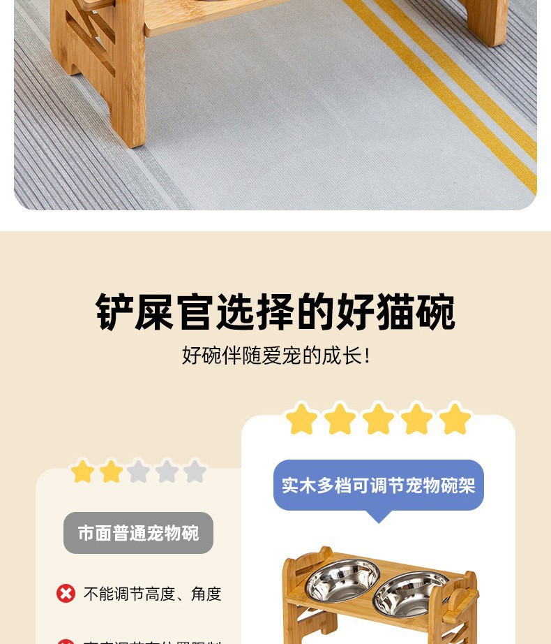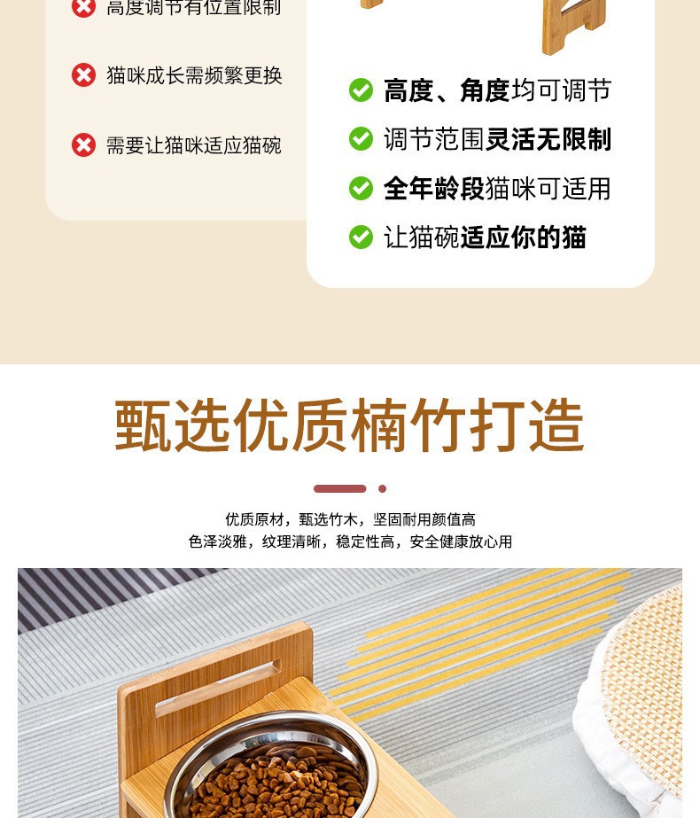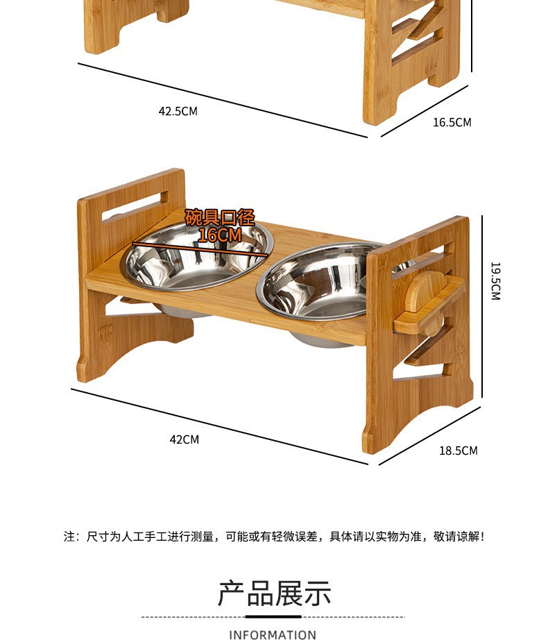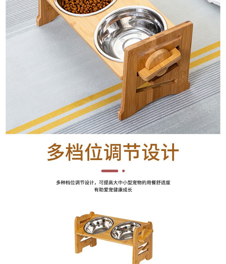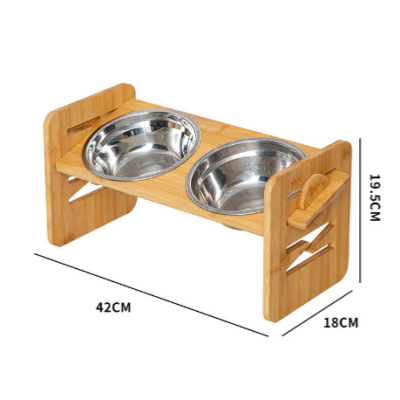 고양이 그릇 홀더 피더 대나무 나무 애완 동물 개밥 더블 그릇 홀더 먹이 랙 애완 동물 그릇 스테인레스 스틸 식사 랙
