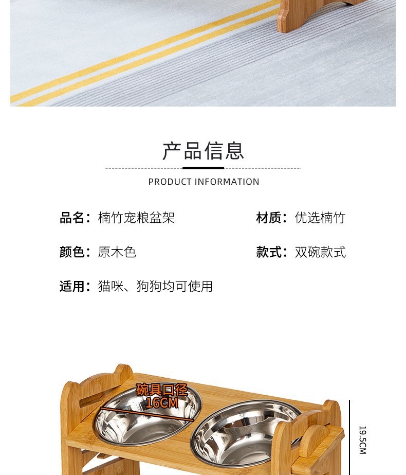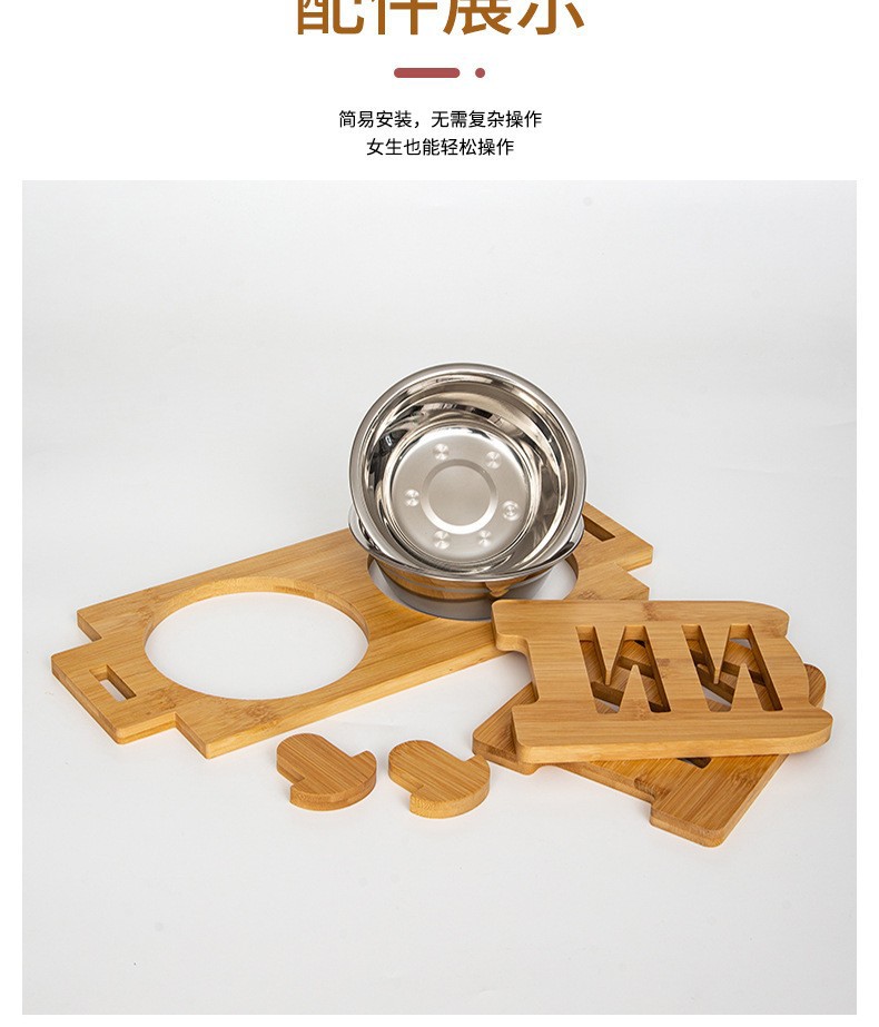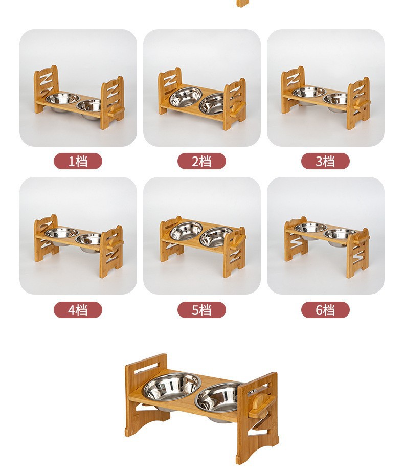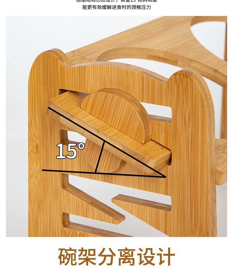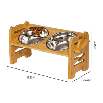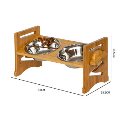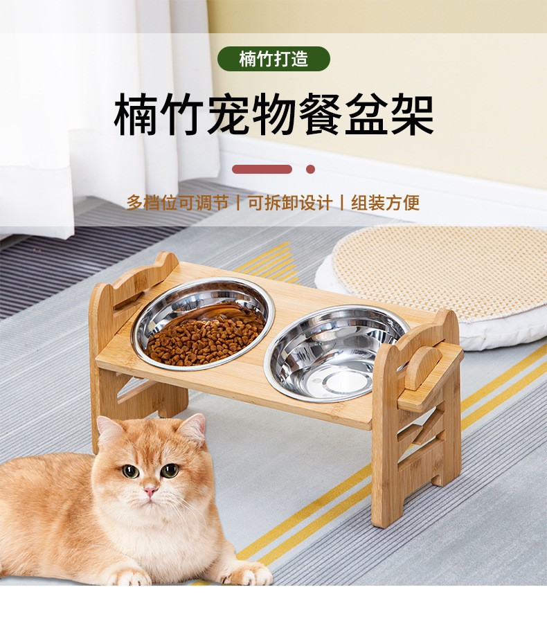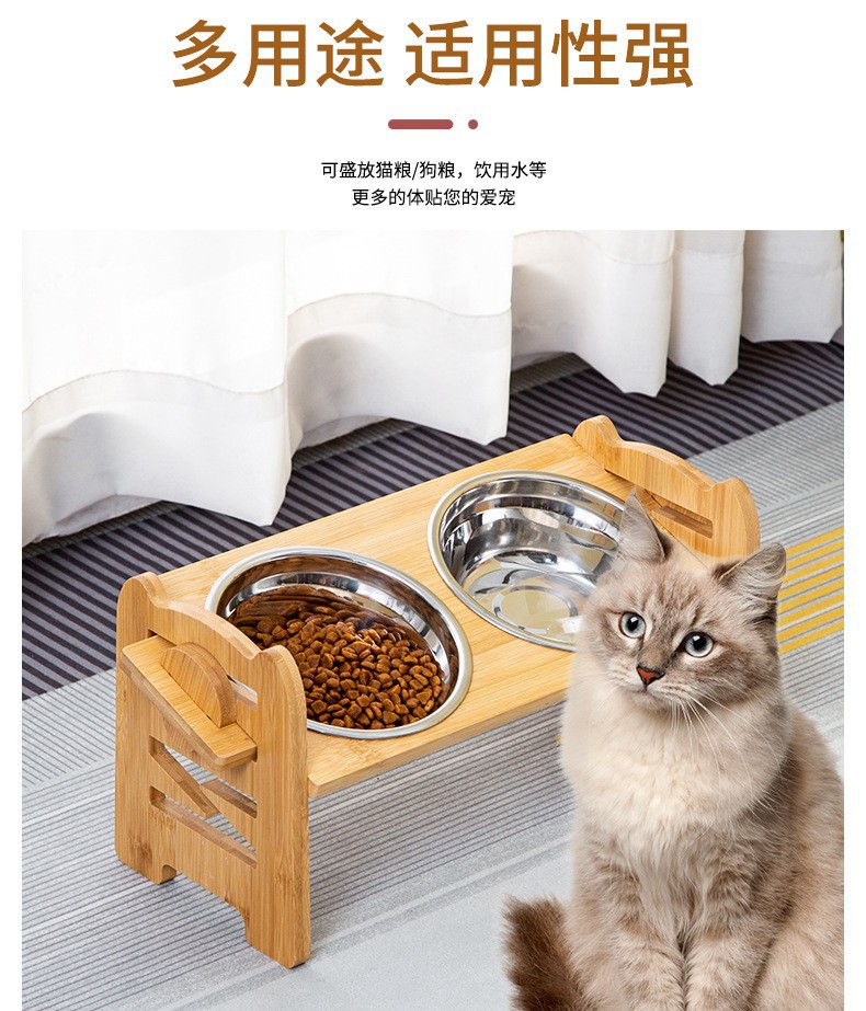 고양이 그릇 홀더 피더 대나무 나무 애완 동물 개밥 더블 그릇 홀더 먹이 랙 애완 동물 그릇 스테인레스 스틸 식사 랙스토어 가기