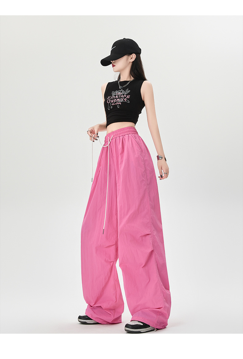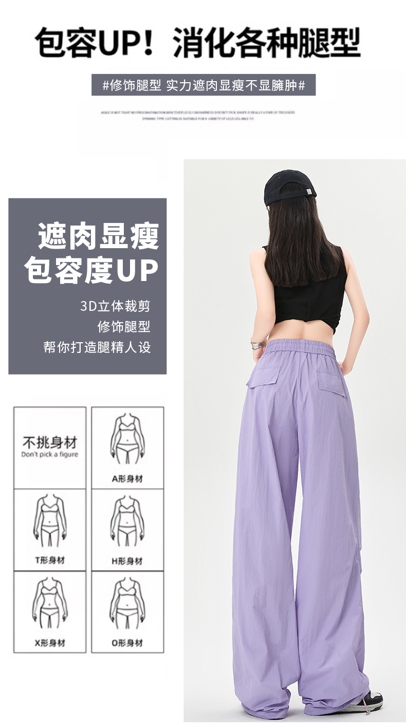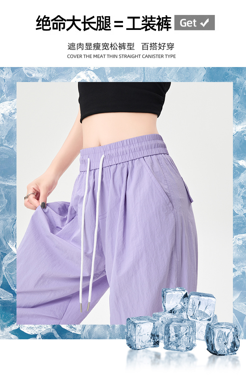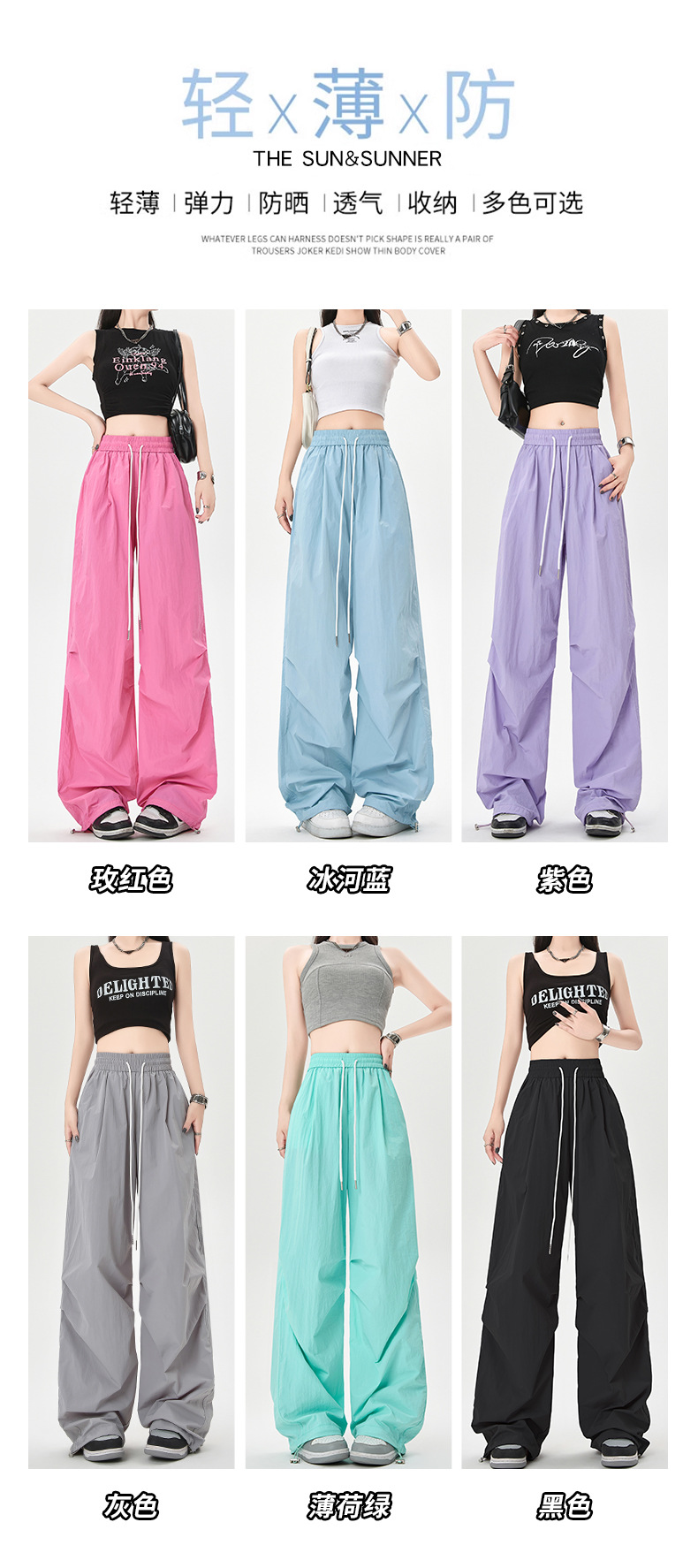 툴링 스타일 낙하산 바지 여성용 2025 년 새 여름 등산 선 스크린 슬림 핏 와이드 다리 캐주얼 바지스토어 가기