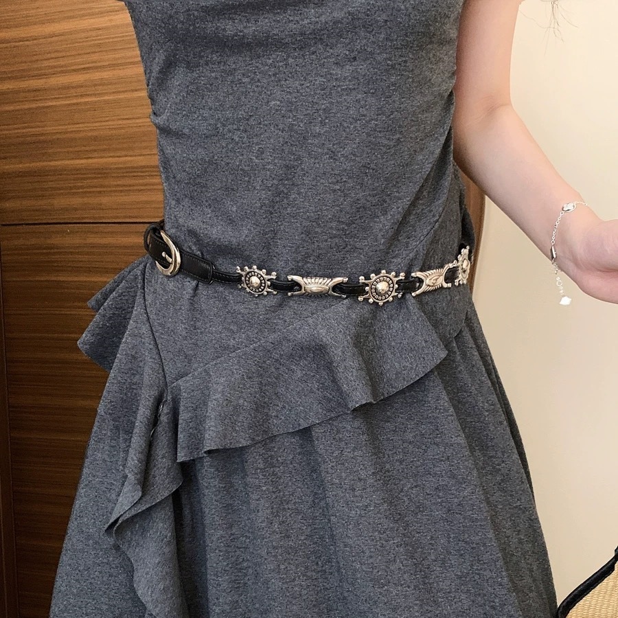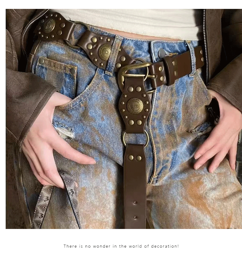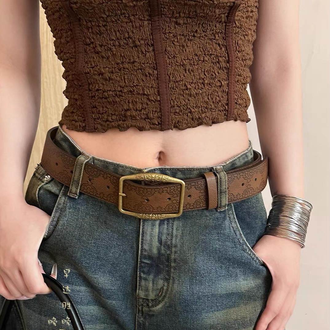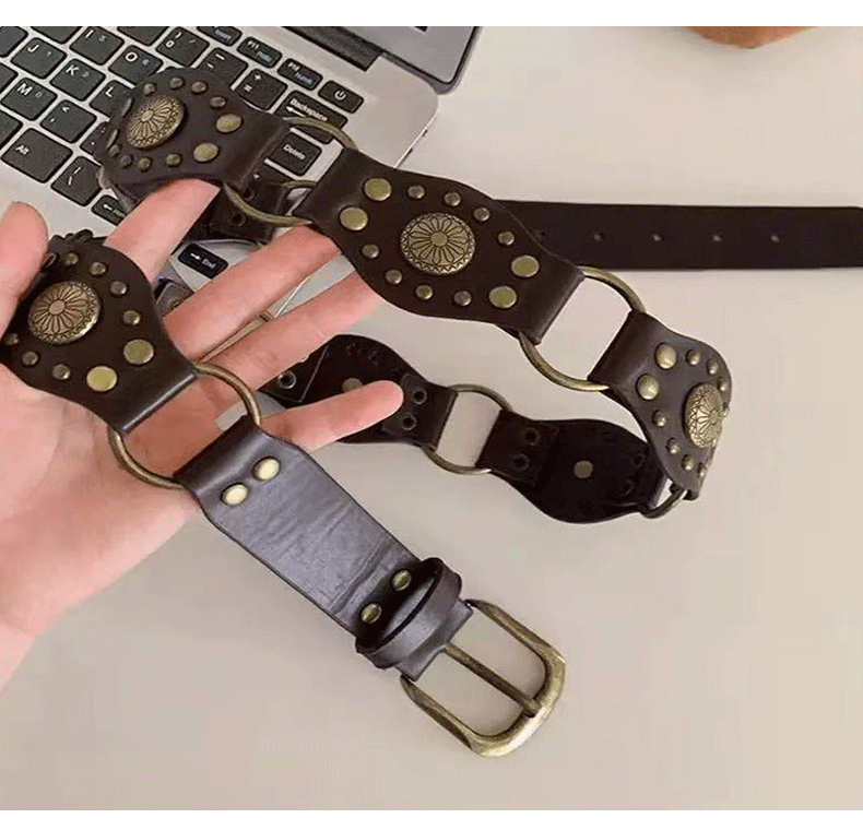 미국식 레트로 버클 벨트 여성용 리벳 신형 다크 브라운 벨트 청바지 한국식 올매치 허리 체인 트렌디
